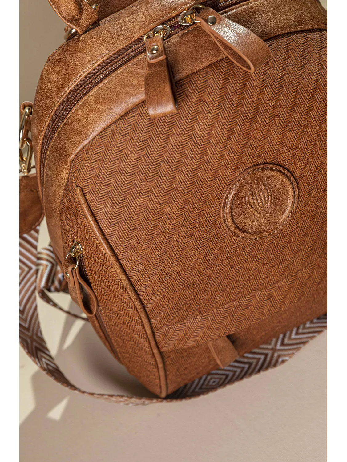 Μεσαίο Backpack με Πολλά Τσεπάκια και υφή Ψάθας