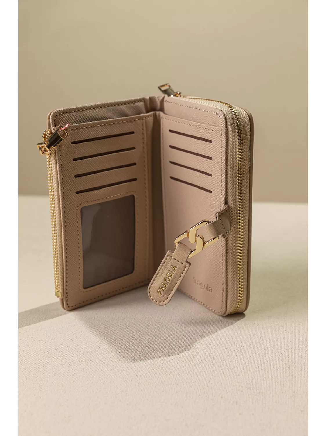 • Διαθέτει πολυθέσιο εσωτερικό με ξεχωριστές θήκες για κάρτες, ειδική θέση για χαρτονομίσματα και ανεξάρτητη θήκη με φερμουάρ για κέρματα.