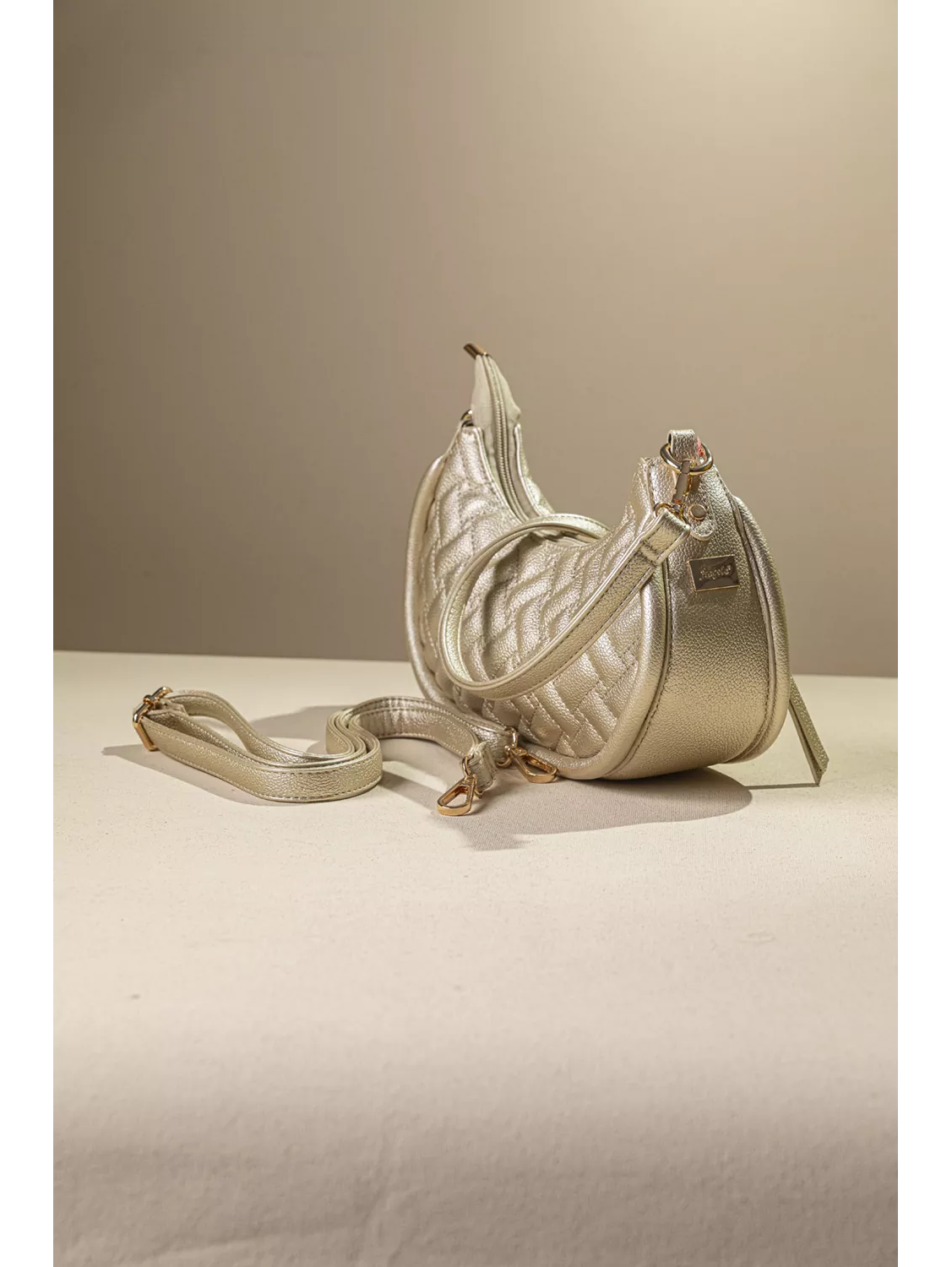• Κομψή τσάντα ώμου με καπιτονέ σχέδιο και σχήμα μισοφέγγαρο. Ιδανική για καθημερινή και απογευματινή χρήση. Διαθέτει άνετο εσωτερικό χώρο με όλα τα απαραίτητα τσεπάκια. • Το πρωί μπορείτε να τη μετατρέψετε σε χιαστί με το έξτρα χεράκι που διαθέτει. In fashion σχέδιο που συνδυάζει πρακτικότητα και διαχρονικό στυλ. Υλικό: Μαλακό συνθετικό δέρμα με puffy καπιτονέ υφή.