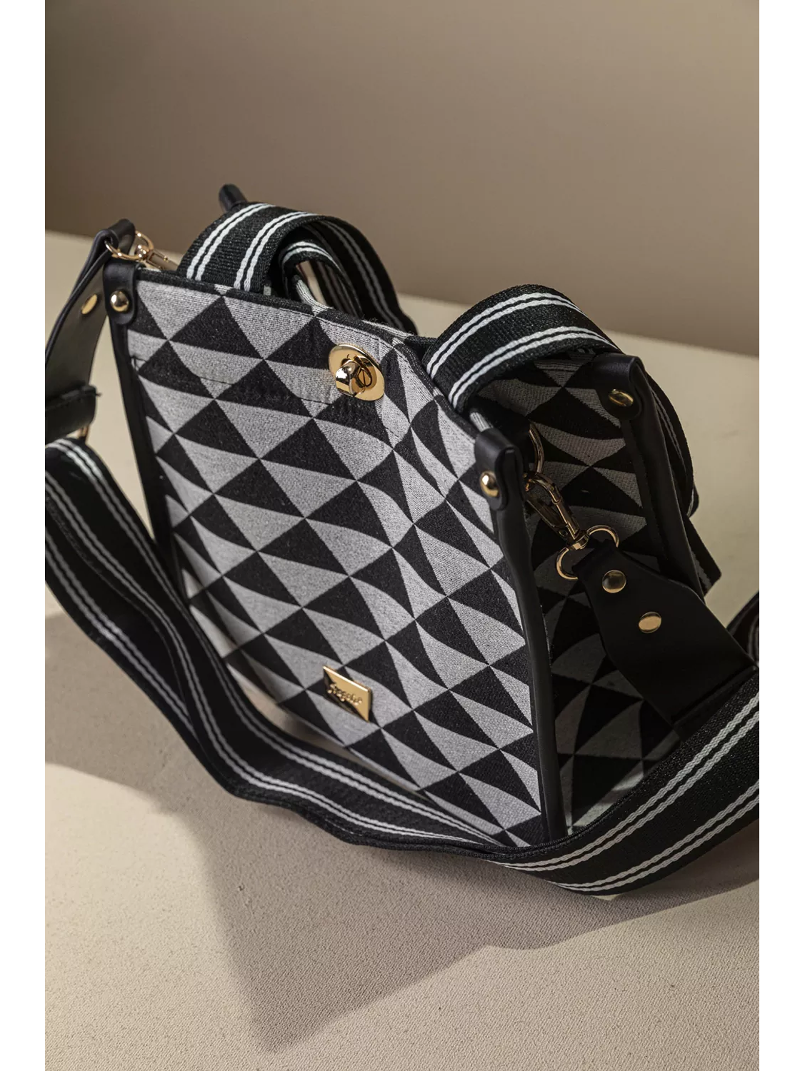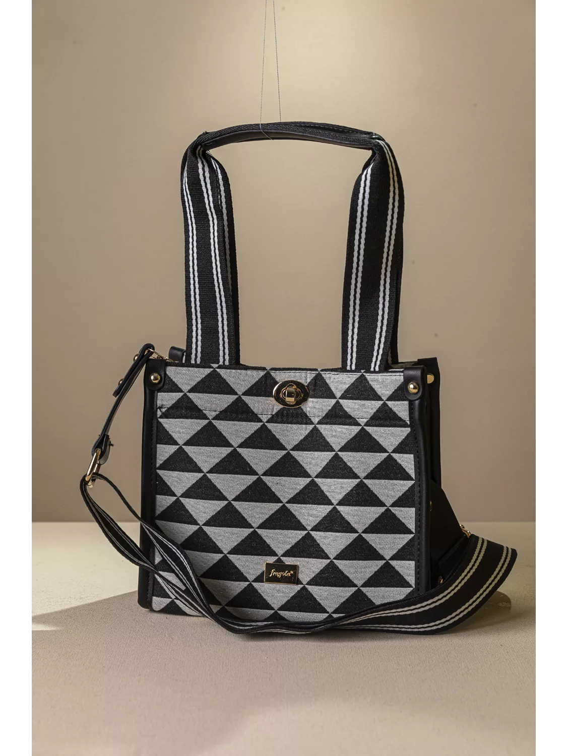 • Υφασμάτινη τσάντα με εντυπωσιακό μοτίβο και μοντέρνες λεπτομέρειες που ξεχωρίζουν. • Διαθέτει κοντά χέρια για κράτημα στο χέρι ή στον ώμο καθώς και αποσπώμενο ρυθμιζόμενο ιμάντα για χιαστί εφαρμογή, προσφέροντας άνεση και ευελιξία σε κάθε περίσταση. • Το σταθερό ύφασμα σε συνδυασμό με τις λεπτομέρειες σε συνθετικό δέρμα χαρίζουν αντοχή και κομψό χαρακτήρα. • Κλείνει με εντυπωσιακό μεταλλικό κούμπωμα διατηρώντας τα προσωπικά αντικείμενα ασφαλή, ενώ το διαχρονικό της σχέδιο και το μικρό μέγεθος της την καθιστά ιδανική επιλογή για καθημερινές αλλά και πιο προσεγμένες εμφανίσεις. Υλικό: Διατίθεται σε εντυπωσιακά animal prints και δημοφιλή γεωμετρικά σχήματα.