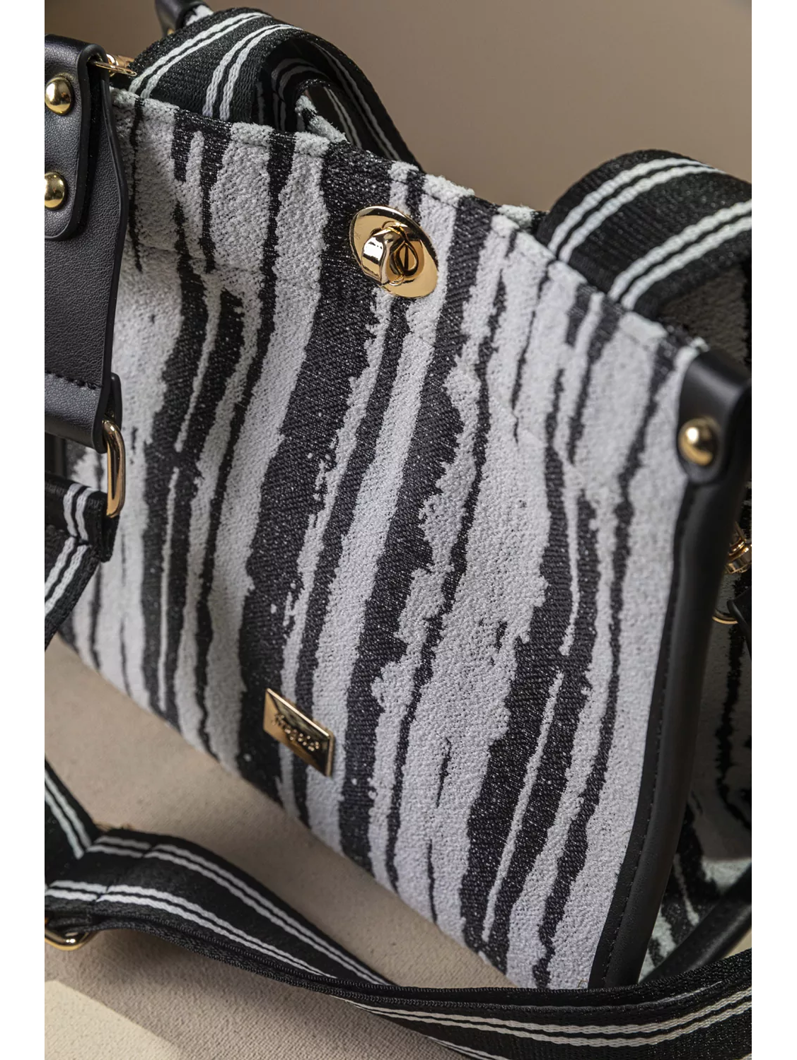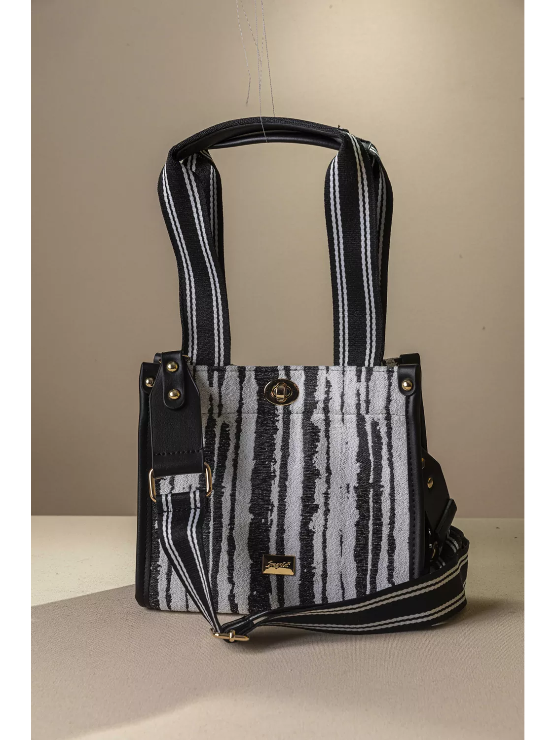 • Υφασμάτινη τσάντα με εντυπωσιακό μοτίβο και μοντέρνες λεπτομέρειες που ξεχωρίζουν. • Διαθέτει κοντά χέρια για κράτημα στο χέρι ή στον ώμο καθώς και αποσπώμενο ρυθμιζόμενο ιμάντα για χιαστί εφαρμογή, προσφέροντας άνεση και ευελιξία σε κάθε περίσταση. • Το σταθερό ύφασμα σε συνδυασμό με τις λεπτομέρειες σε συνθετικό δέρμα χαρίζουν αντοχή και κομψό χαρακτήρα. • Κλείνει με εντυπωσιακό μεταλλικό κούμπωμα διατηρώντας τα προσωπικά αντικείμενα ασφαλή, ενώ το διαχρονικό της σχέδιο και το μικρό μέγεθος της την καθιστά ιδανική επιλογή για καθημερινές αλλά και πιο προσεγμένες εμφανίσεις. Υλικό: Διατίθεται σε εντυπωσιακά animal prints και δημοφιλή γεωμετρικά σχήματα.