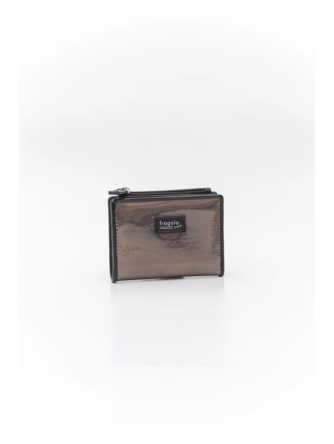 Μικρό πορτοφόλι που κλείνει με κουμπάκι. Στο εσωτερικό υπάρχουν πολλές θήκες για κάρτες και ξεχωριστή θήκη με φερμουάρ.