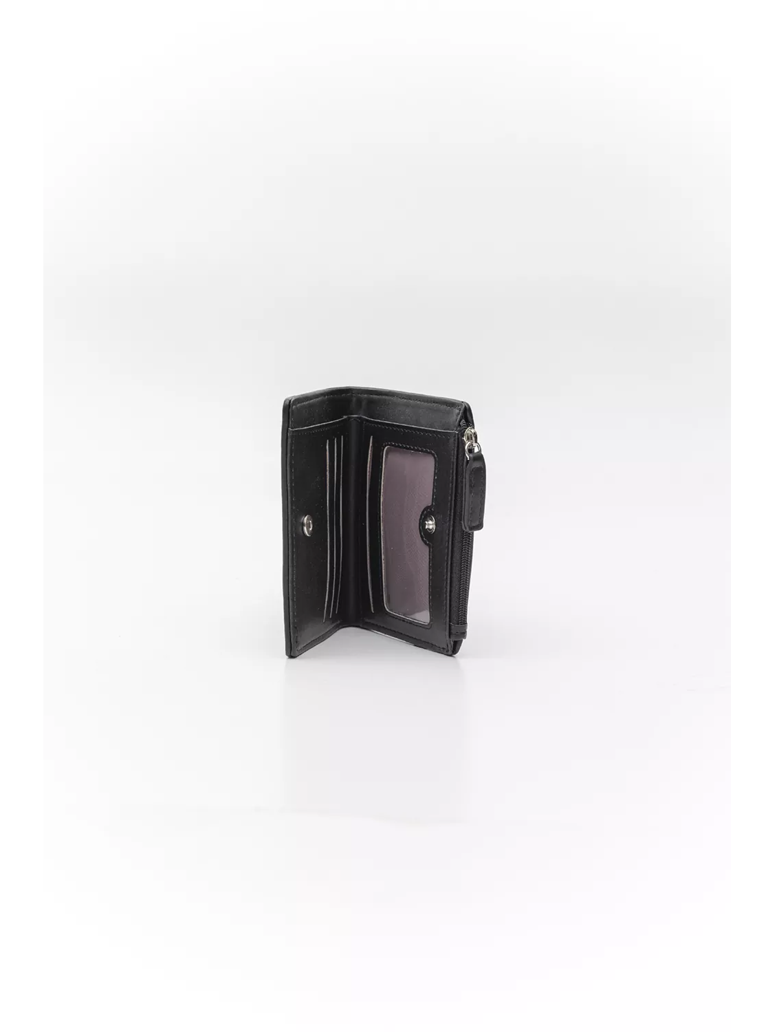 Μικρό πορτοφόλι που κλείνει με κουμπάκι. Στο εσωτερικό υπάρχουν πολλές θήκες για κάρτες και ξεχωριστή θήκη με φερμουάρ.