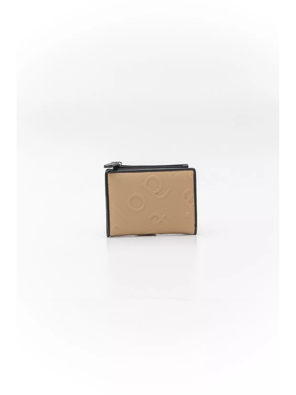 Μικρό πορτοφόλι που κλείνει με κουμπάκι. Στο εσωτερικό υπάρχουν πολλές θήκες για κάρτες και ξεχωριστή θήκη με φερμουάρ. Υλικό: Οικολογικό δέρμα με ανάγλυφο το λογότυπο της εταιρίας σε mirror printing.