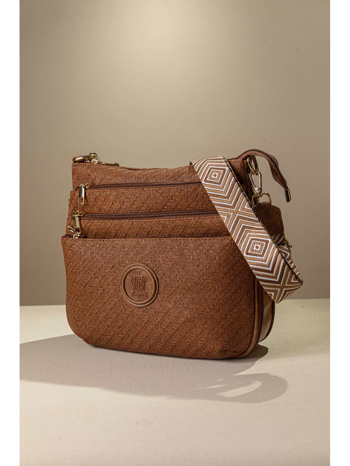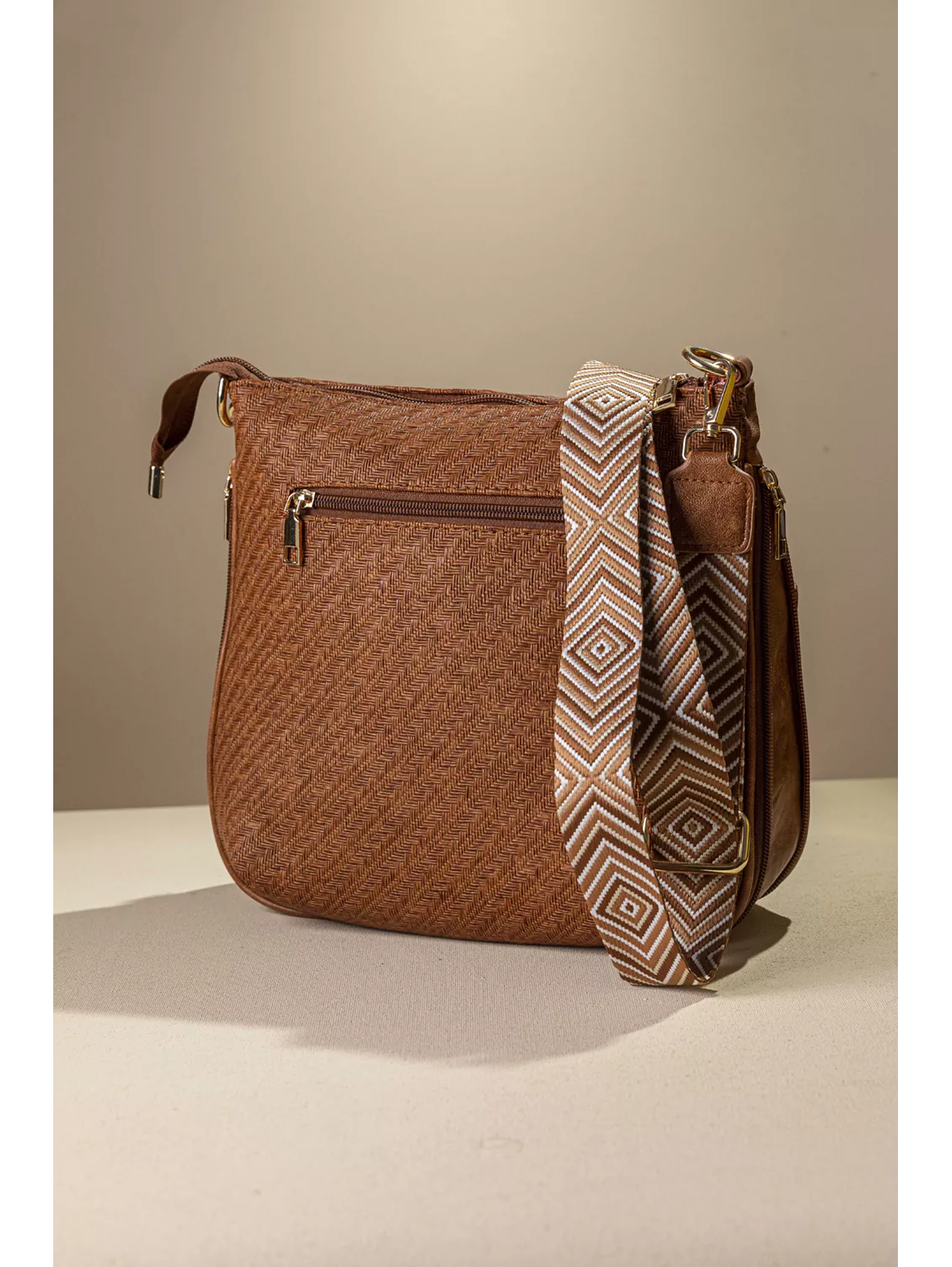 Υλικό: Συνθετικό ανάγλυφο δέρμα με μορφή ψάθας σε γήινα χρώματα.