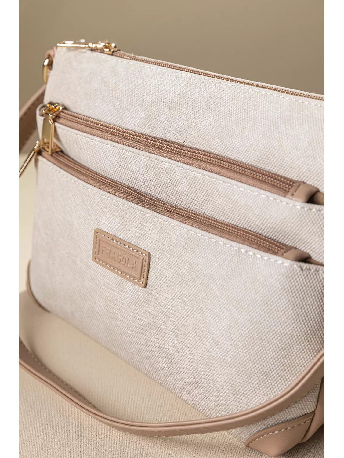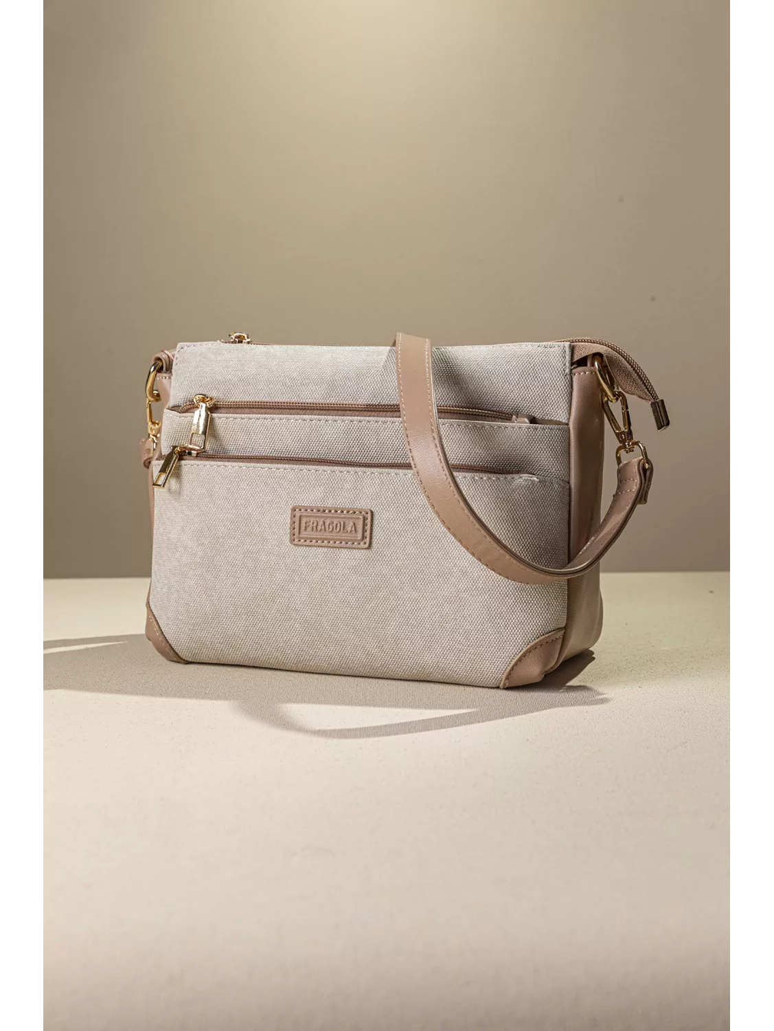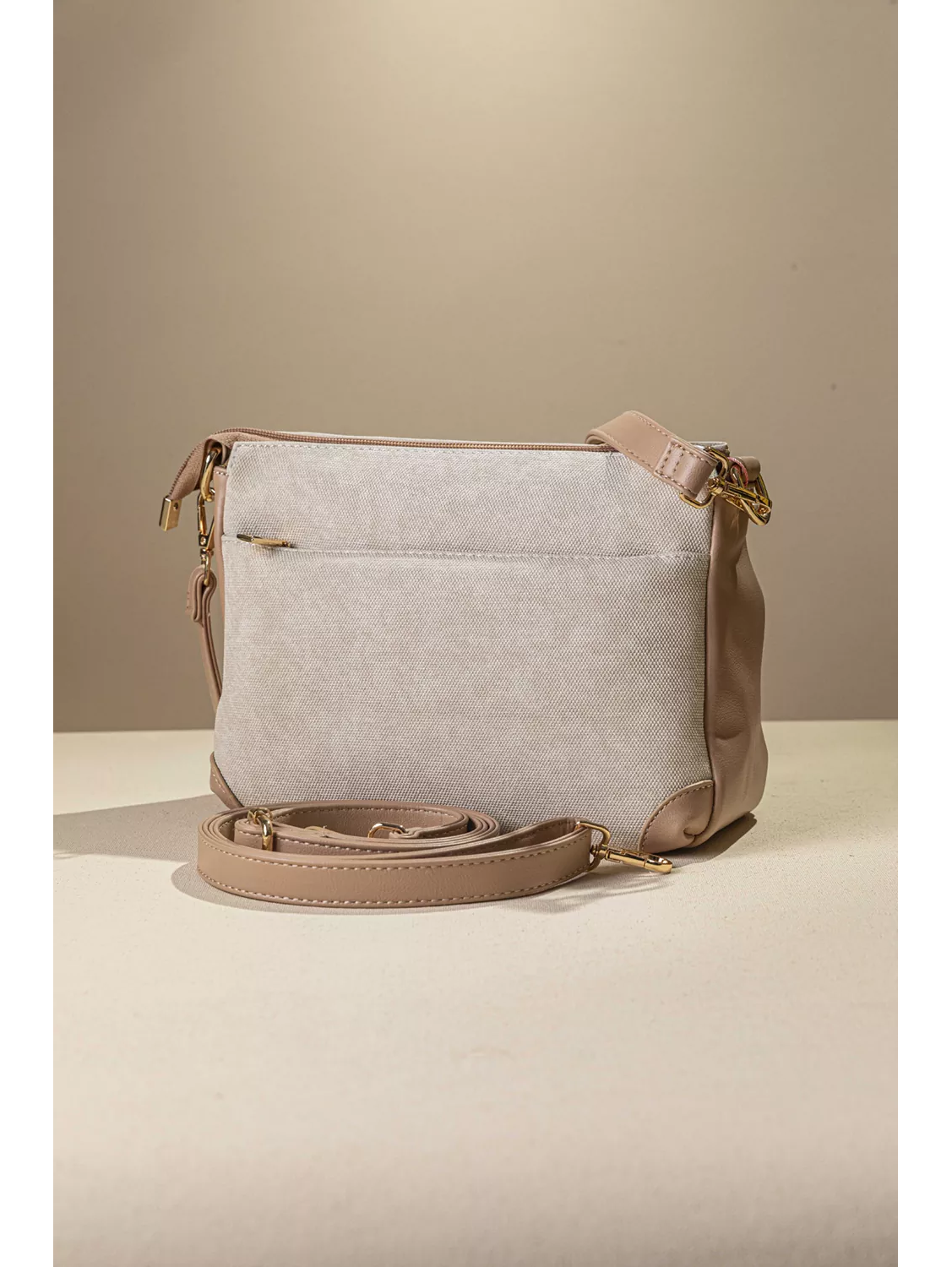 • Μια μεγάλη τσέπη με φερμουάρ στο πίσω μέρος. Διαθέτει ένα κοντό χέρι για τον ώμο και ένα μακρύ με αυξομείωση για να τη φοράτε χιαστί.