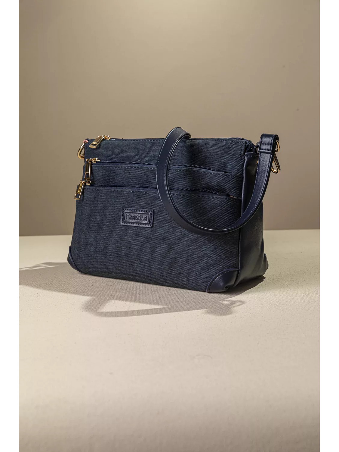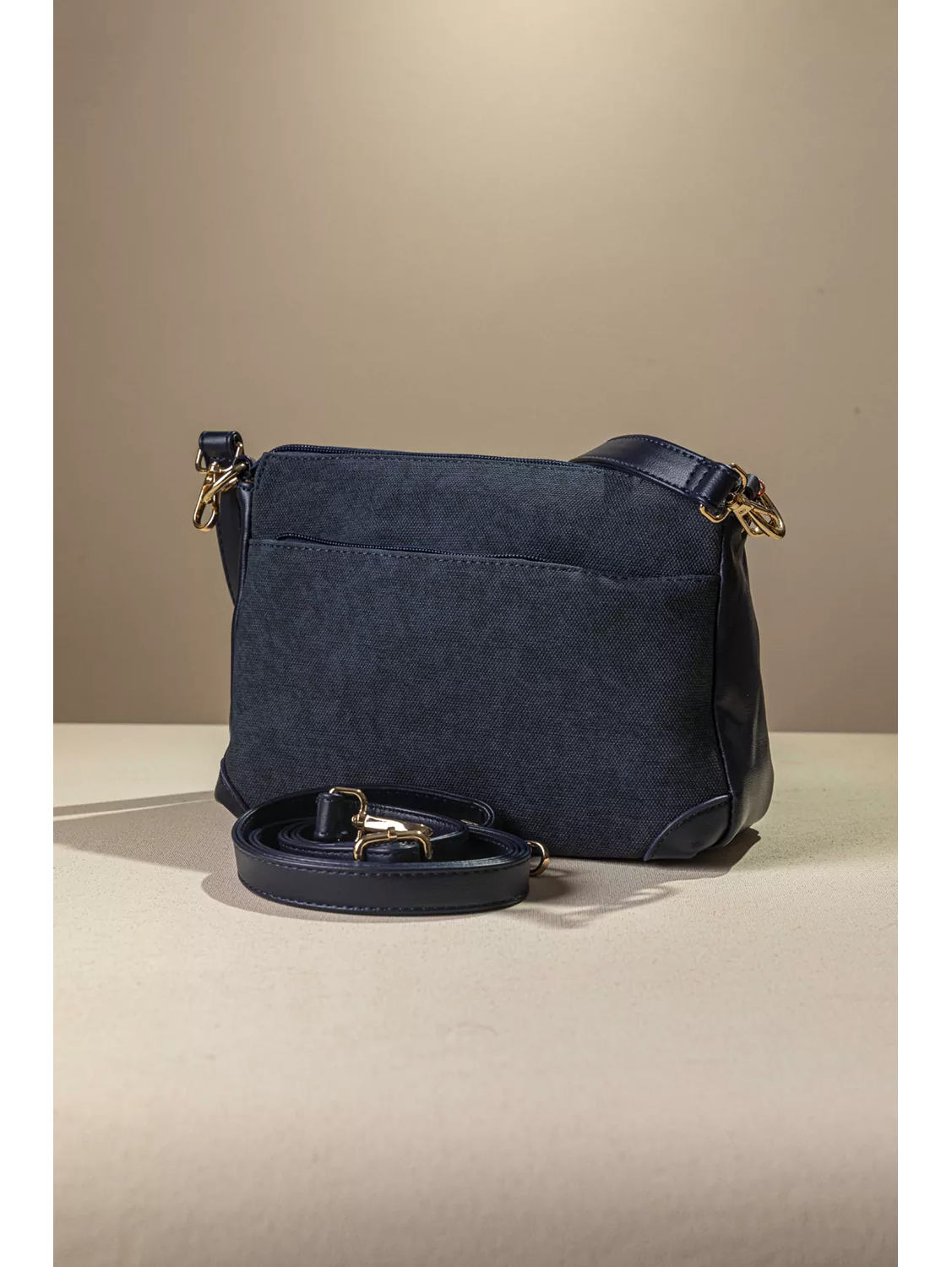 • Μια μεγάλη τσέπη με φερμουάρ στο πίσω μέρος. Διαθέτει ένα κοντό χέρι για τον ώμο και ένα μακρύ με αυξομείωση για να τη φοράτε χιαστί.