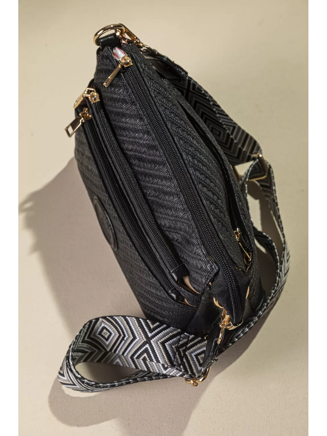 • Μια μεγάλη τσέπη με φερμουάρ στο πίσω μέρος. Διαθέτει ένα κοντό χέρι για τον ώμο και ένα μακρύ με αυξομείωση για να τη φοράτε χιαστί.