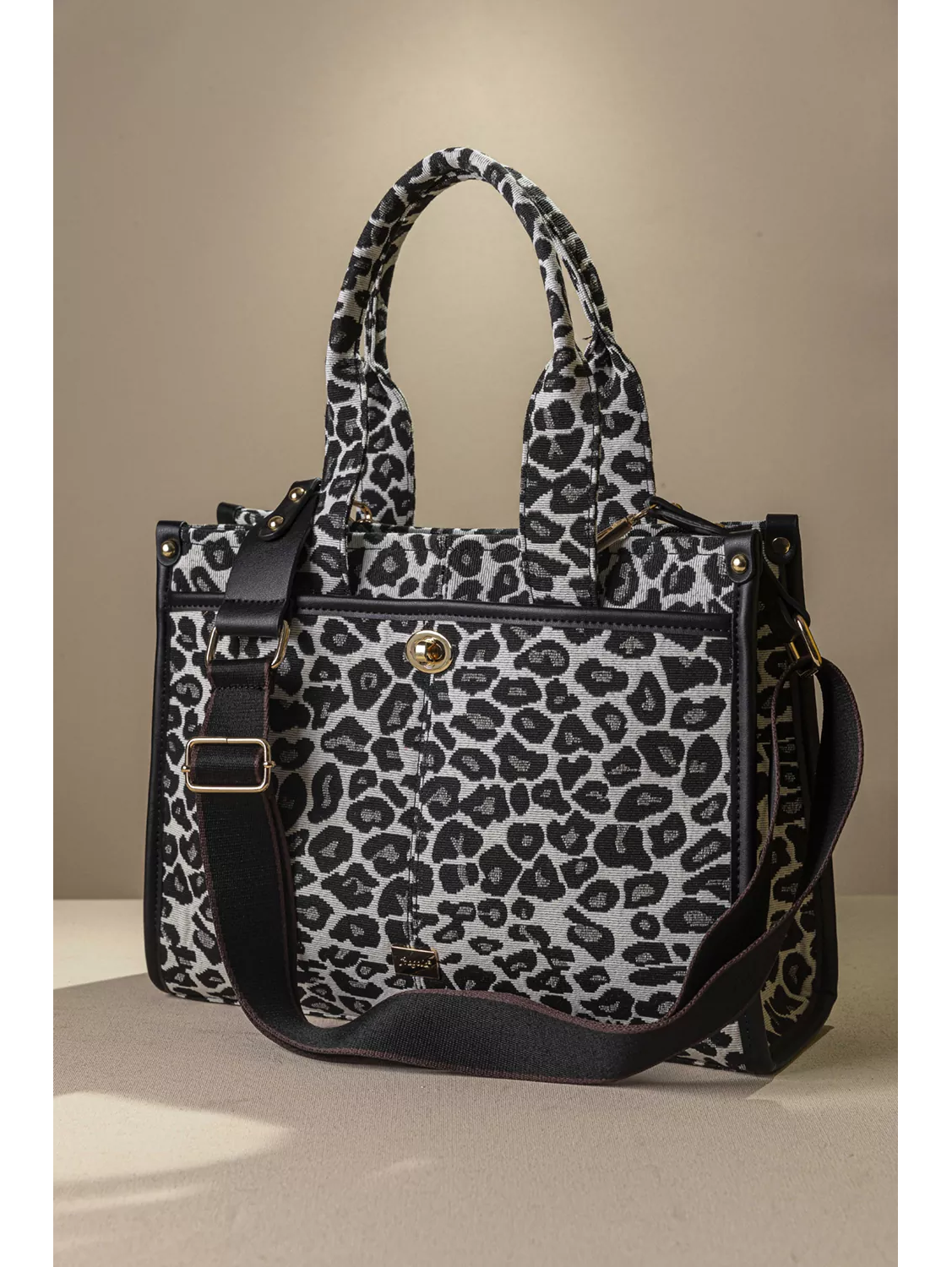 • Κομψή και μοντέρνα υφασμάτινη τσάντα, με εντυπωσιακά υφάσματα σε animal prints. Ιδανική για να δώσει χαρακτήρα σε κάθε σου εμφάνιση.