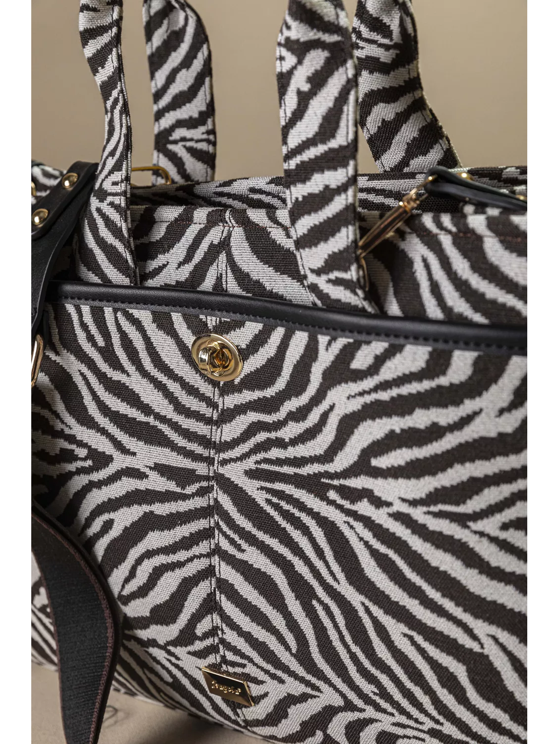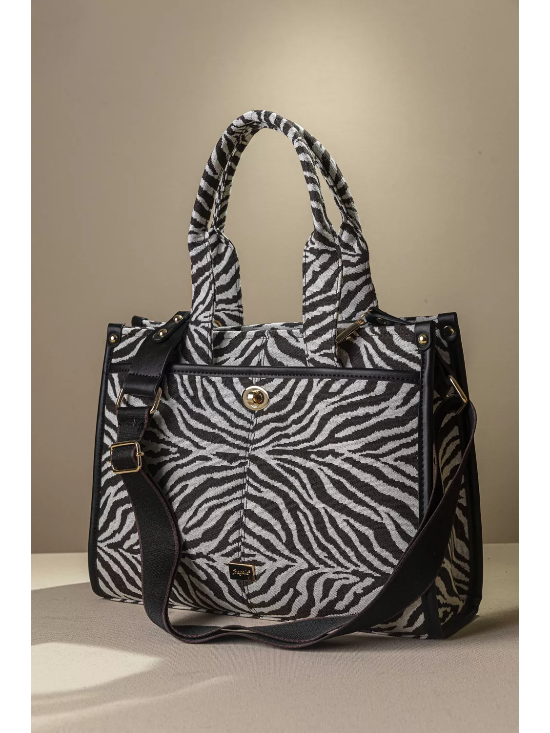 • Κομψή και μοντέρνα υφασμάτινη τσάντα, με εντυπωσιακά υφάσματα σε animal prints. Ιδανική για να δώσει χαρακτήρα σε κάθε σου εμφάνιση. • Στο μπροστινό μέρος διαθέτει extra μεγάλη τσέπη που κλείνει με minimal μεταλλικό κούμπωμα, προσφέροντας εύκολη πρόσβαση και πρακτικότητα στην καθημερινότητα σας. • Η κεντρική θήκη της τσάντας κλείνει με φερμουάρ εξασφαλίζονται ασφάλεια για τα προσωπικά αντικείμενα σας. • Μπορεί να κρατηθεί άνετα στο χέρι χάρη στα σταθερά χέρια αλλά και να φορεθεί χιαστί ή στον ώμο με τον αποσπώμενο ιμάντα. • Ένα statement αξεσουάρ που συνδυάζει στυλ και λειτουργικότητα ιδανικό για όλες τις ώρες της ημέρας.