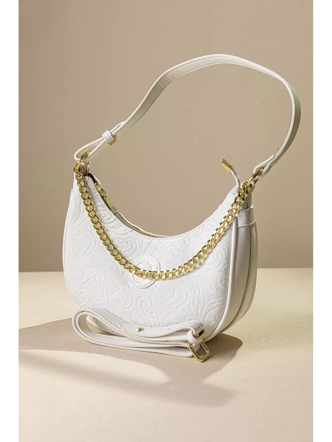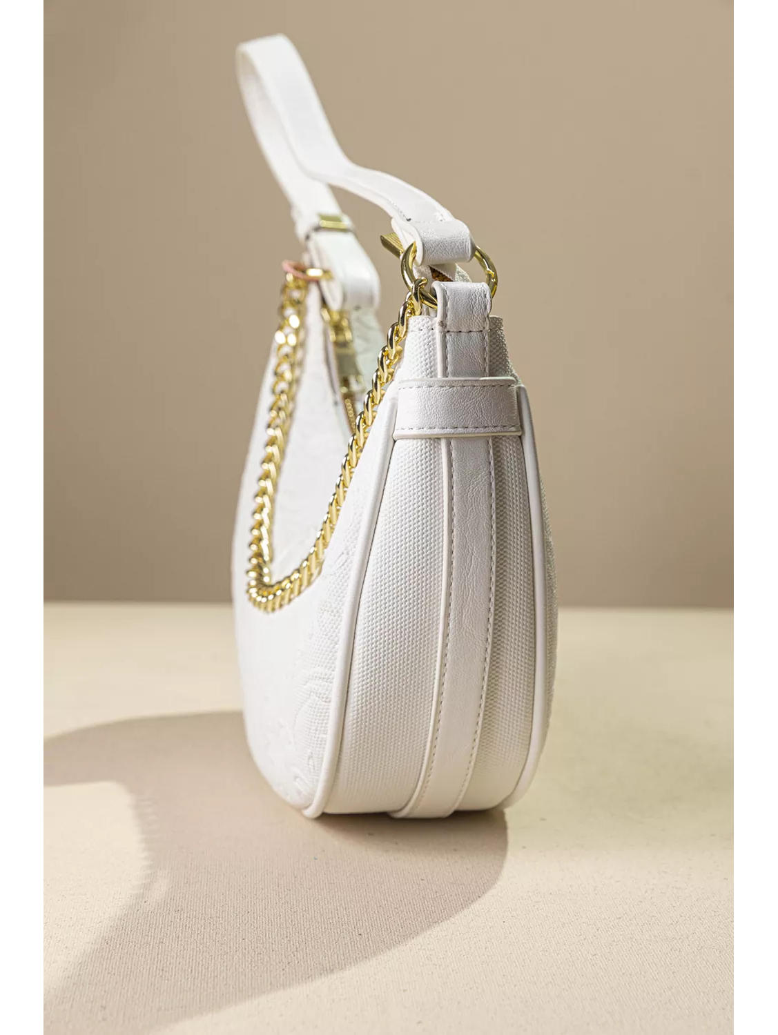 • Νεανική διαχρονική τσάντα ώμου, ιδανική για κάθε ώρα της ημέρας. • Διακοσμείται με εντυπωσιακή χρυσή αλυσίδα στο μπροστινό μέρος καθώς και συνθετικό ανάγλυφο δέρμα με το logo της εταιρείας. • Διαθέτει ρυθμιζόμενο χέρι ώμου για άνετη εφαρμογή και πρακτικό μέγεθος που χωράει τα απαραίτητα της καθημερινότητας. • Κλείνει με φερμουάρ για μεγαλύτερη ασφάλεια και έχει εσωτερικά όλα τα απαραίτητα τσεπάκια. • Πρακτική για όλη την ημέρα αλλά και για πιο βραδινές εμφανίσεις. Υλικό: Συνθετικό δέρμα με υφή canva και εντυπωσιακό ανάγλυφο print.