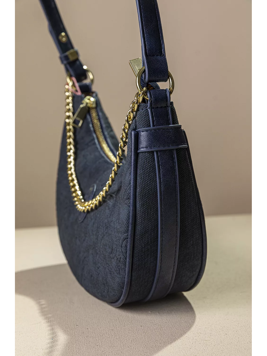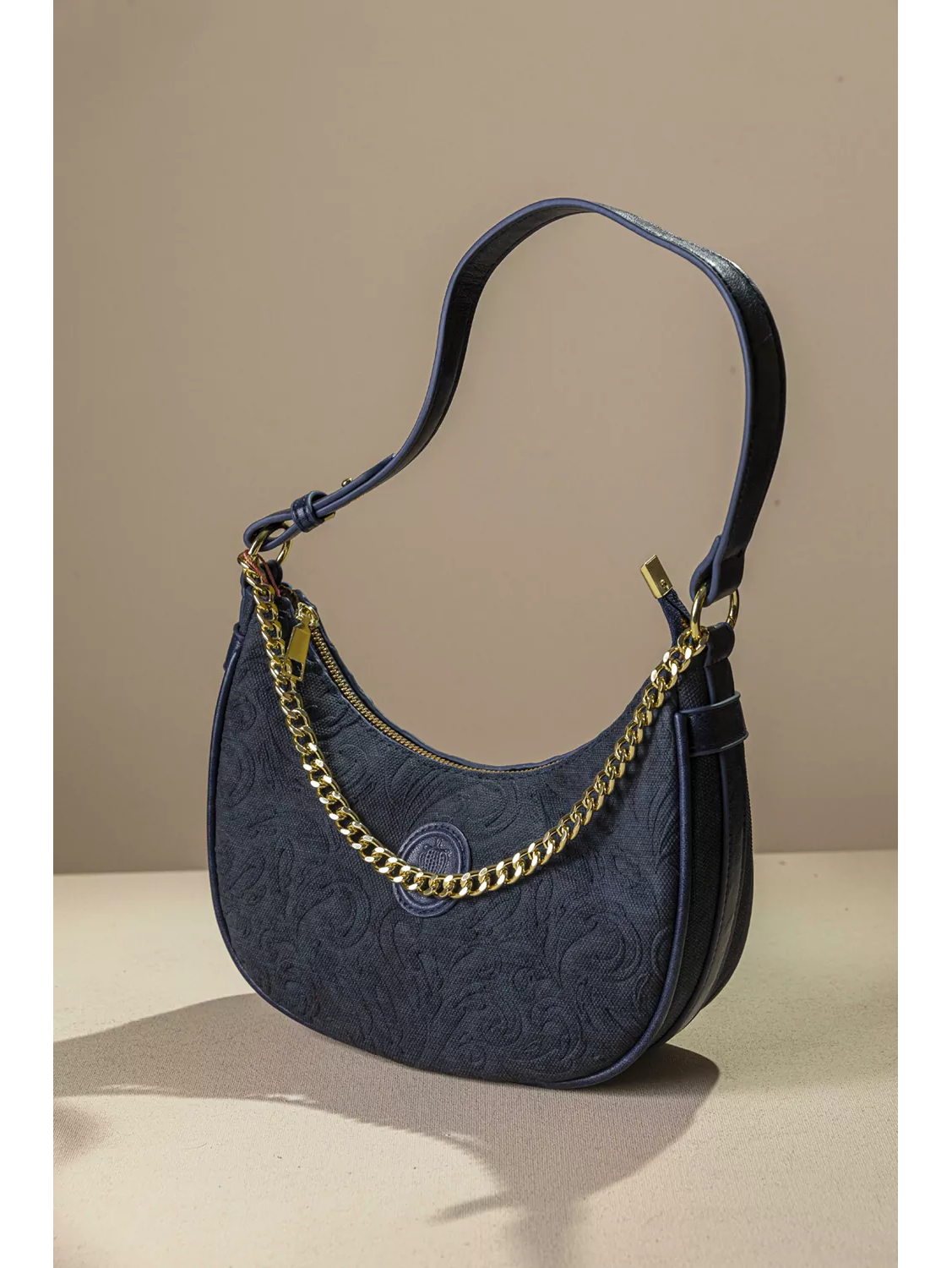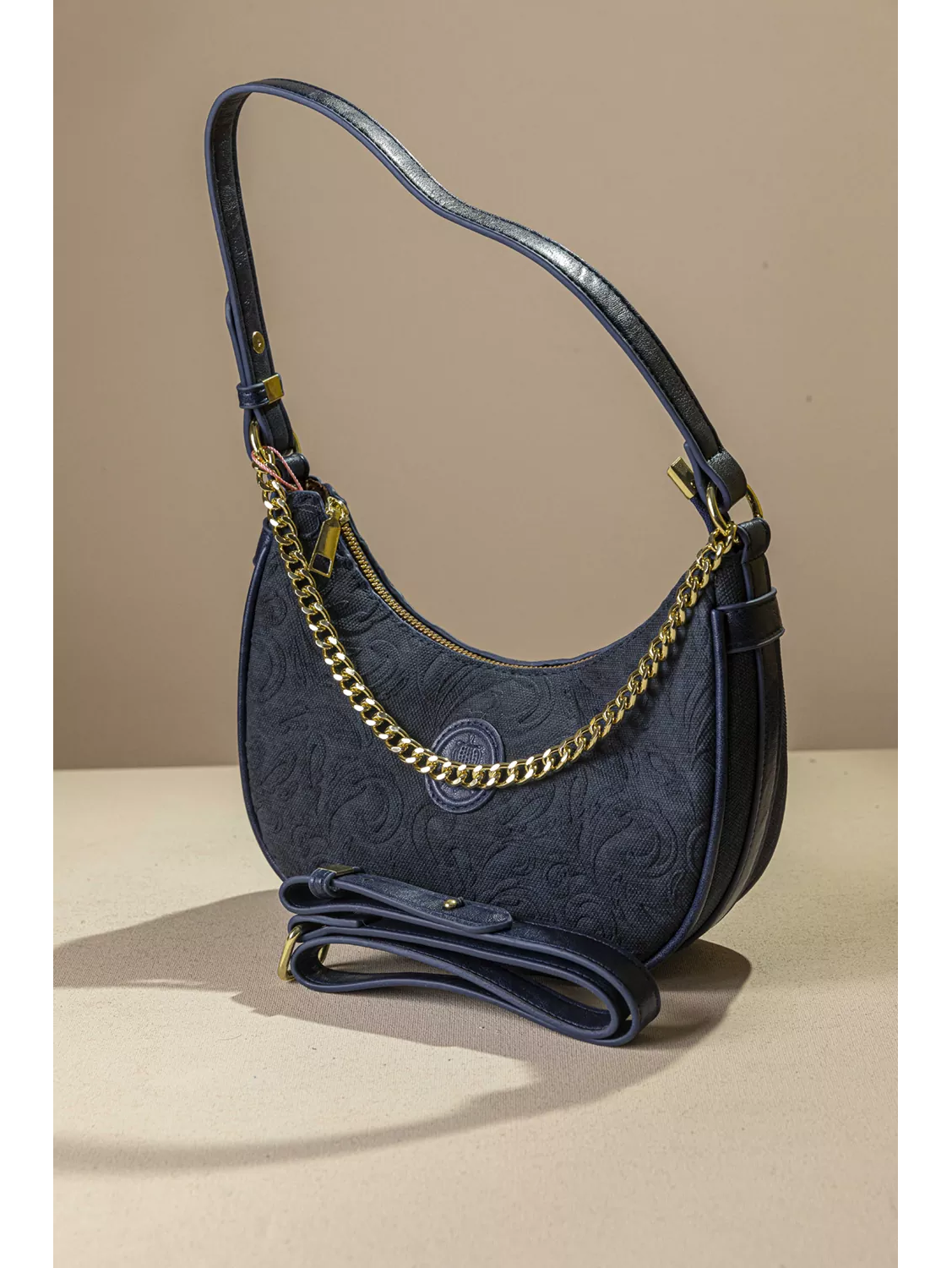• Διακοσμείται με εντυπωσιακή χρυσή αλυσίδα στο μπροστινό μέρος καθώς και συνθετικό ανάγλυφο δέρμα με το logo της εταιρείας.