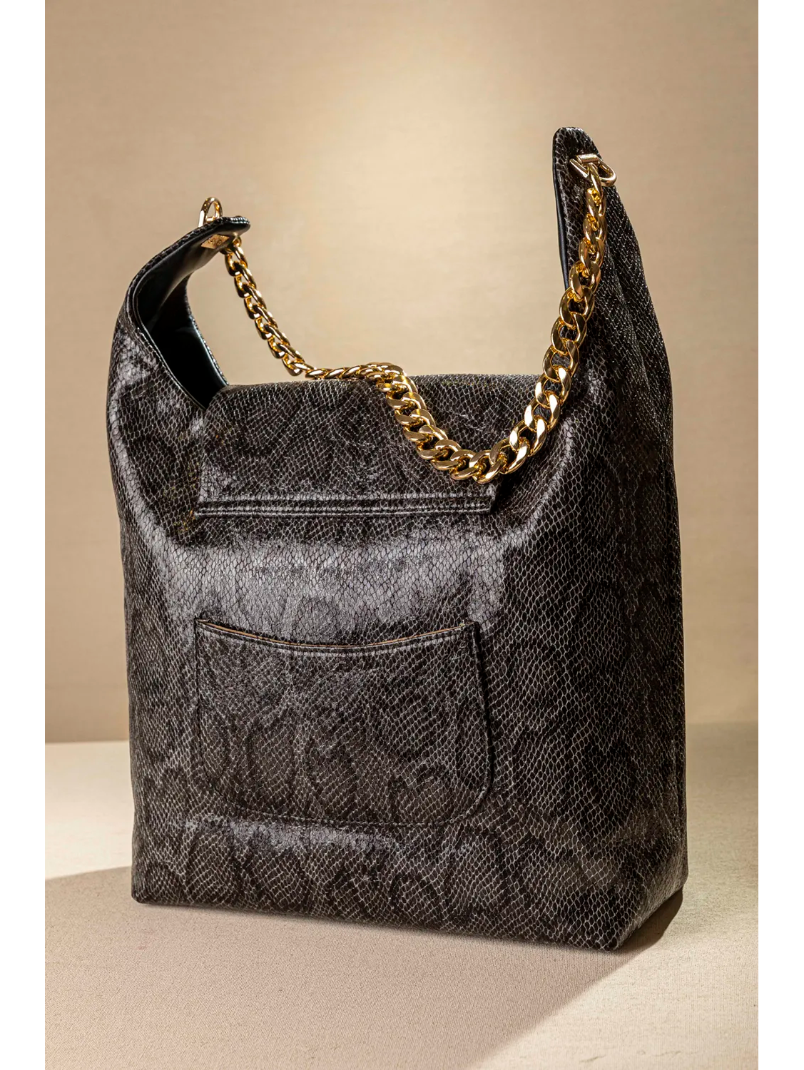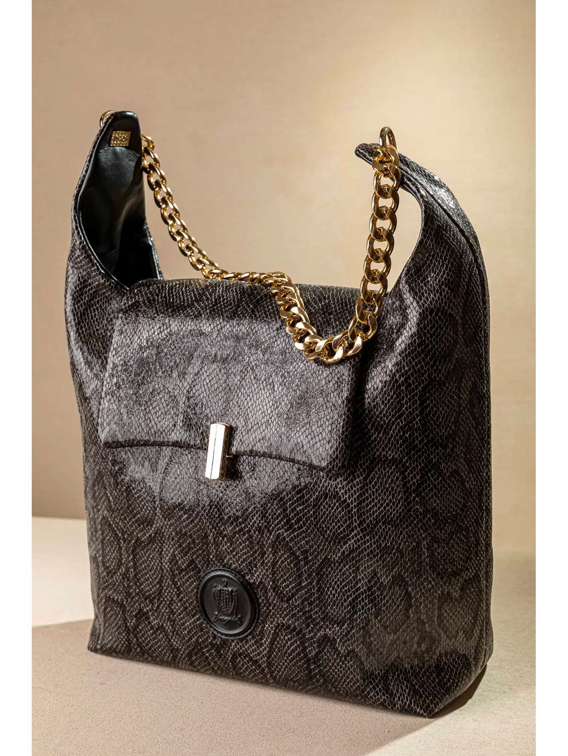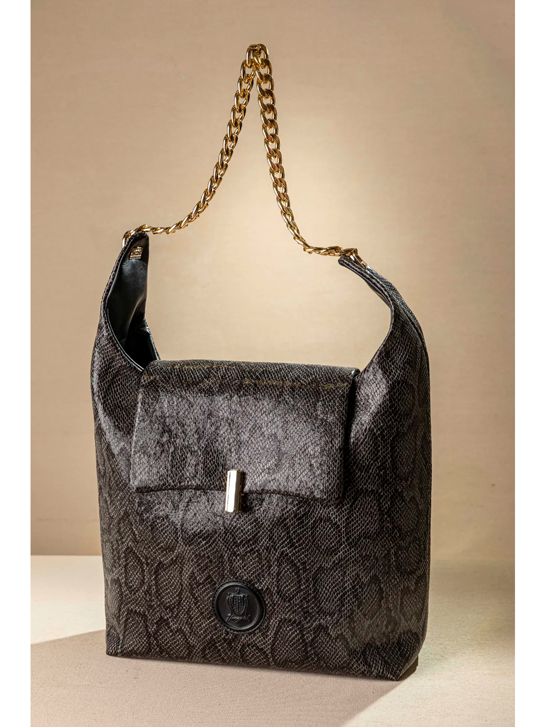 Αυτή είναι η πιο στιλάτη και ελαφριά τσάντα ώμου! Κλείνει με καπάκι με περίτεχνο μεταλλικό κλιπ. Ένας ενιαίος χώρος εσωτερικά που διαθέτει όλα τα μικροτσεπάκια με φερμουάρ ή χωρίς. Στο πίσω μέρος της υπάρχει έξτρα μικρό τσεπάκι! Χοντρή τροχισμένη, ελαφριά αλυσίδα για τον ώμο. Υλικό: Συνθετικό δέρμα με υφή και orint φιδιού ή tiger print.