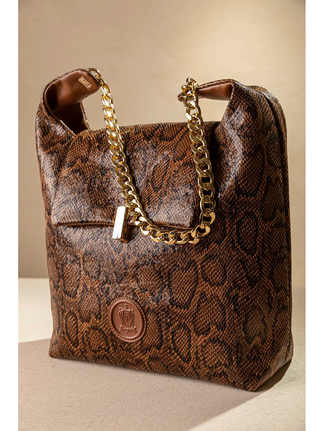Αυτή είναι η πιο στιλάτη και ελαφριά τσάντα ώμου! Κλείνει με καπάκι με περίτεχνο μεταλλικό κλιπ. Ένας ενιαίος χώρος εσωτερικά που διαθέτει όλα τα μικροτσεπάκια με φερμουάρ ή χωρίς. Στο πίσω μέρος της υπάρχει έξτρα μικρό τσεπάκι! Χοντρή τροχισμένη, ελαφριά αλυσίδα για τον ώμο. Υλικό: Συνθετικό δέρμα με υφή και orint φιδιού ή tiger print.