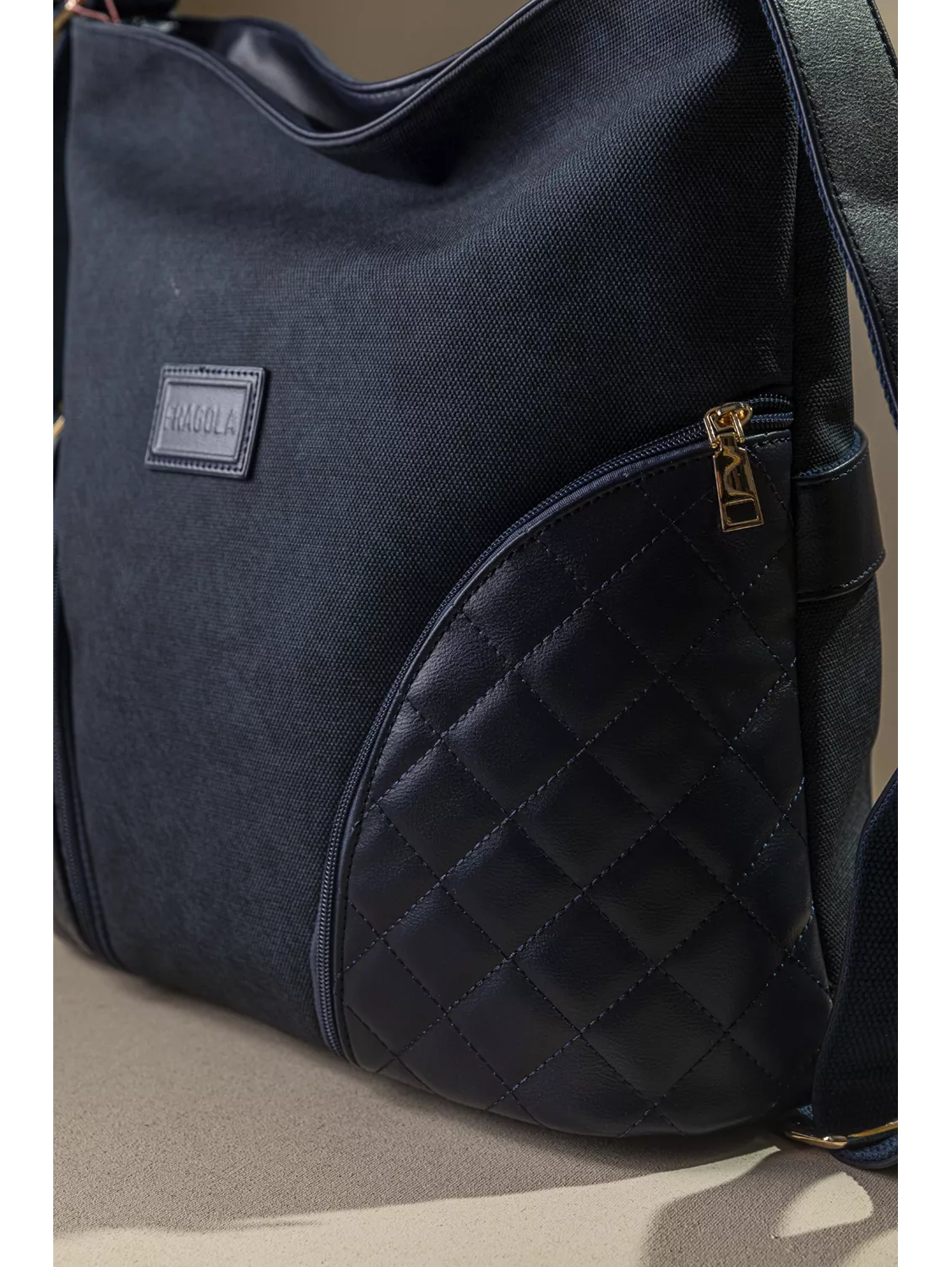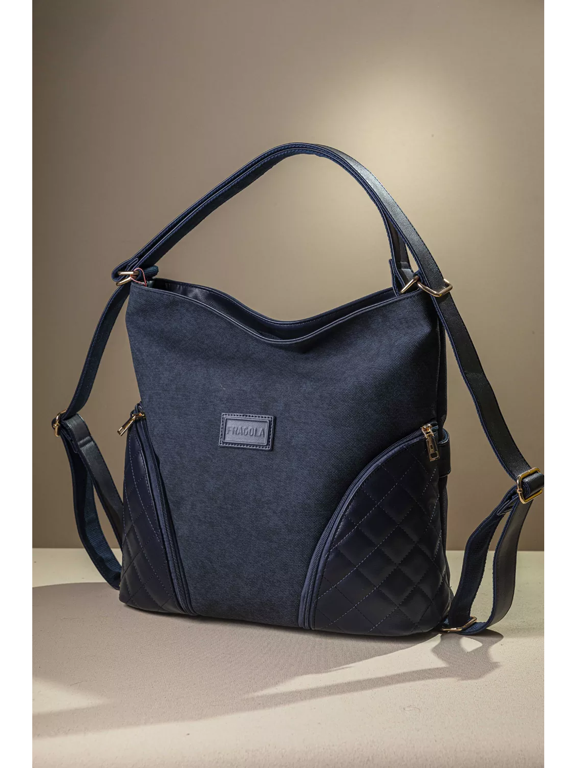 • Πολυμορφική γυναικεία τσάντα που φοριέται vς σακίδιο πλάτης αλλά και ως τσάντα ώμου η χιαστί. • Συνδυάζει υφασμάτινη υφή με καπιτονέ λεπτομέρειες προσφέροντας άνεση πρακτικότητα και σύγχρονο στιλ. • Ευέλικτος συνδυασμός που προσαρμόζεται σε κάθε ανάγκη, ακόμη και για ταξίδια αφού στο πίσω μέρος διαθέτει ζωνάρι για προσαρμογή σε βαλίτσα. • Διατίθεται σε δυο διαφορετικές μορφές. Υλικό: Συνθετικό δέρμα με ανάγλυφη υφή και το logo της εταιρείας ή συνθετικό δέρμα με τη μορφή canva σε εντυπωσιακά χρώματα