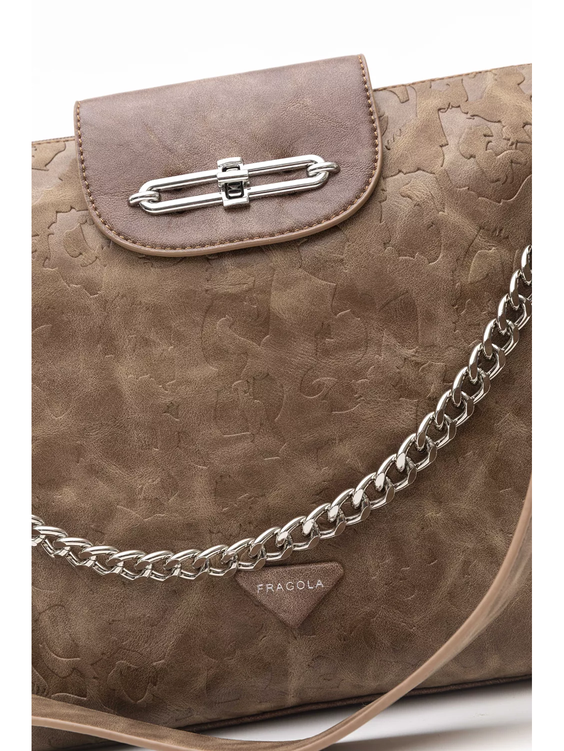 Πολυμορφική τσάντα μεσαίου μεγέθους. Ενιαίος εσωτερικός χώρος με τα βοηθητικά τσεπάκια και εξωτερική βοηθητική τσέπη με φερμουάρ και έξτρα κλείσιμο με μικρό καπάκι με κλειδαριά. Διαθέτει τρία διαφορετικά χέρια. Ένα χέρι ώμου για ολη την ημέρα. Χοντρή αλυσίδα που μπορεί να χρησιμοποιηθεί είτε ως διακοσμητικό της τσάντας είτε ως χέρι ώμου για βραδινή έξοδο. Τρίτο χέρι με το οποίο μπορεί να κρατηθεί χιαστί.