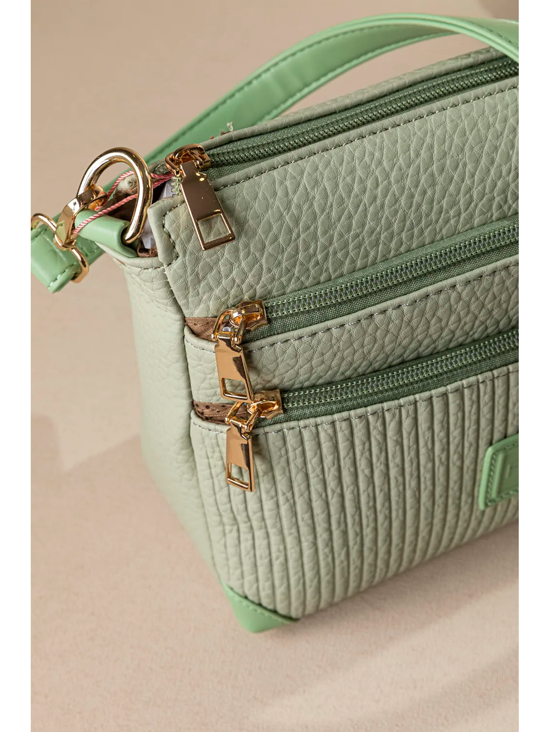 Δύο ξεχωριστές εξωτερικές τσέπες μπροστά που κλείνουν με φερμουάρ. Μια θέση πίσω που κλείνει με φερμουάρ. Η απόλυτα πρακτική καθημερινή χιαστί τσάντα!