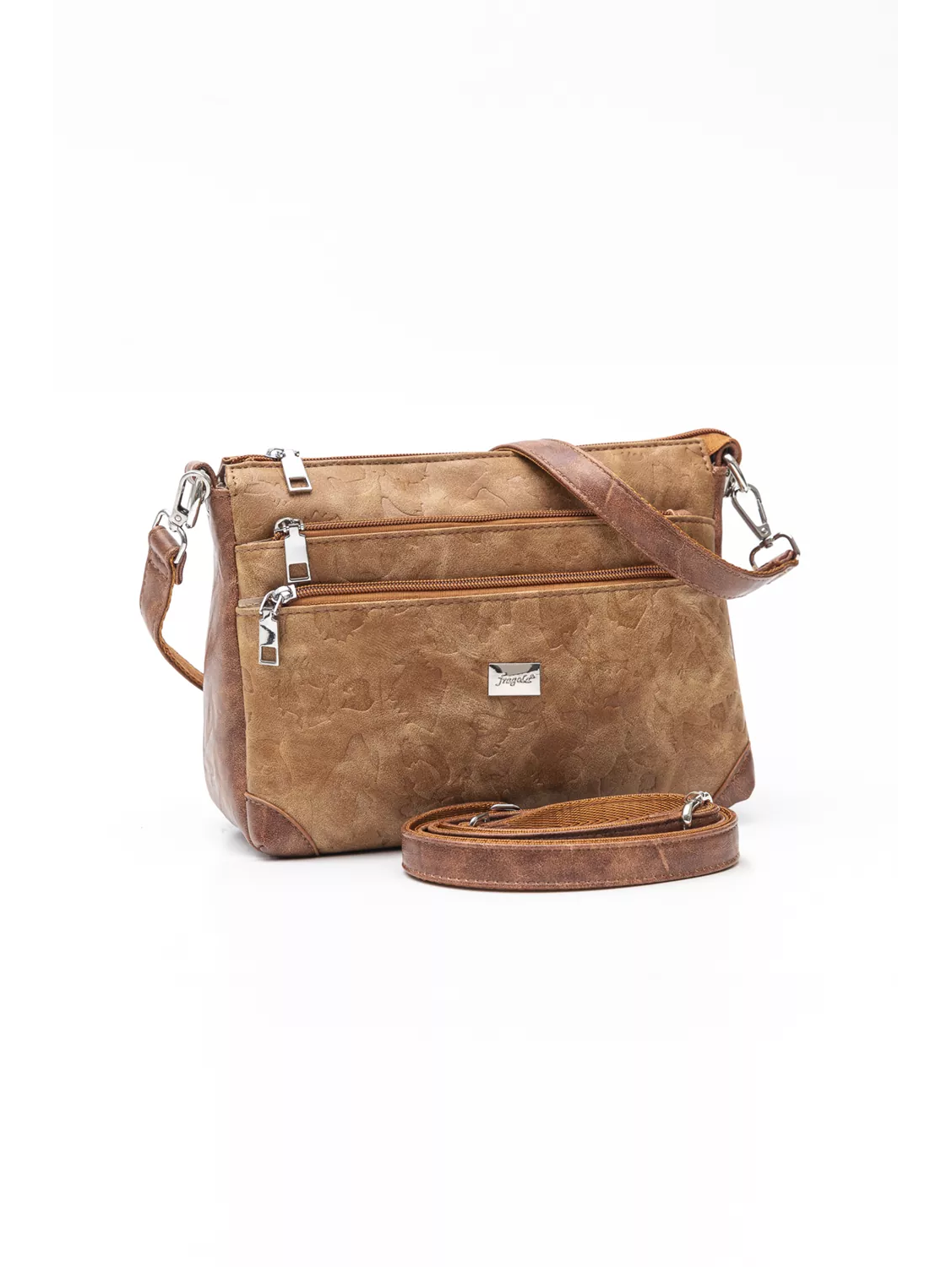 Δύο ξεχωριστές εξωτερικές τσέπες μπροστά που κλείνουν με φερμουάρ. Μια θέση πίσω που κλείνει με φερμουάρ. Η απόλυτα πρακτική καθημερινή χιαστί τσάντα!