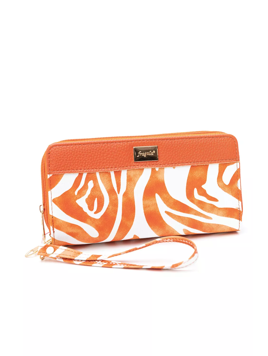 Πορτοφόλι διπλά ανοιγόμενο. Από τη μια πλευρά διαθέτει μια διθέσια θέση για κέρματα και δύο χώρους με φυσούνα χρηστικούς για διάφορα χαρτιά ή σημειώσεις και κλείνει με φερμουάρ. Από την άλλη διαθέτει θέση για χαρτονομίσματα, ταυτότητα, δίπλωμα και πολλές θέσεις για κάρτες. Κλείνει με γλωσσάκι που έχει σούστα.