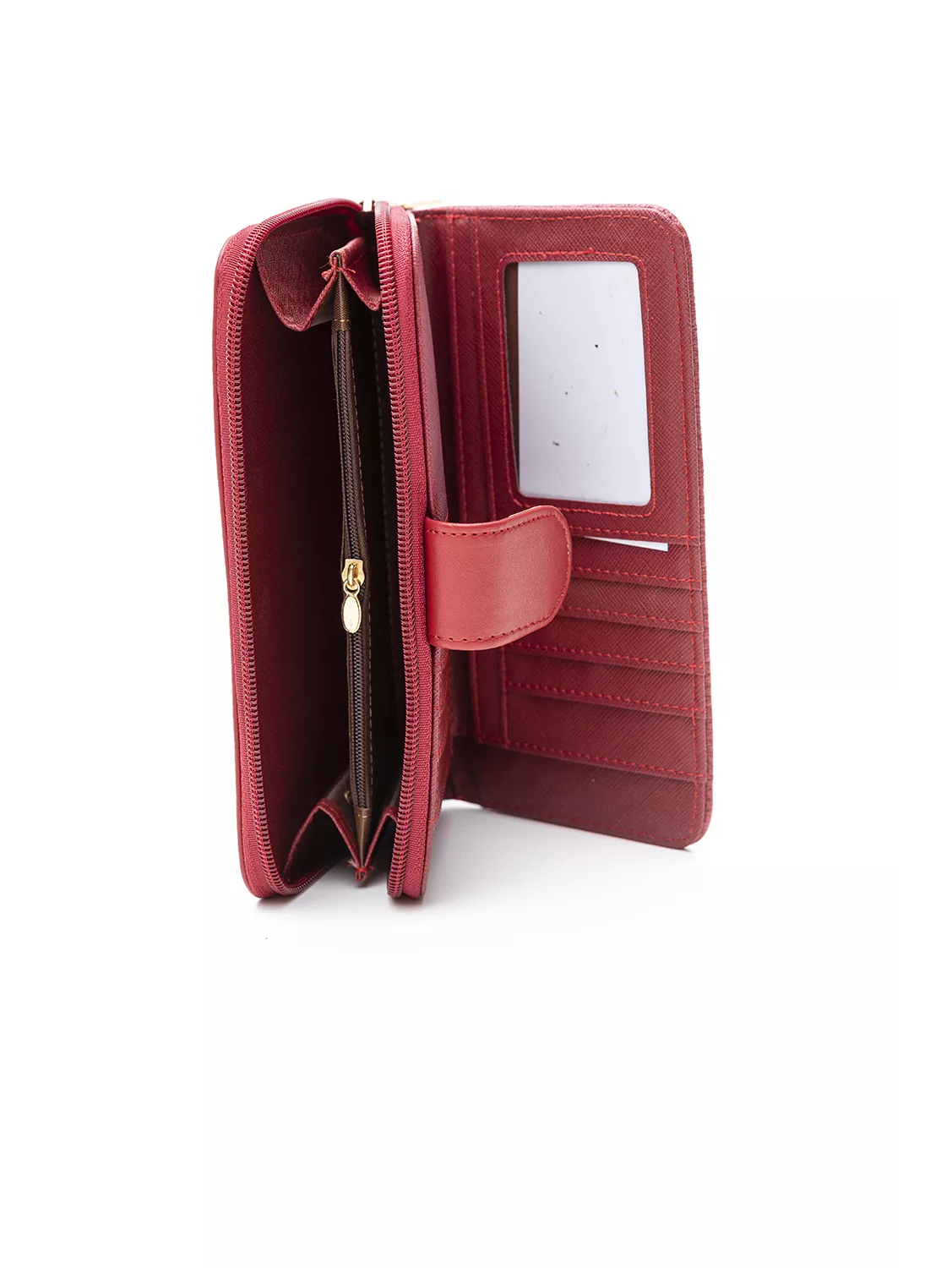 Πορτοφόλι διπλά ανοιγόμενο. Από τη μια πλευρά διαθέτει μια διθέσια θέση για κέρματα και δύο χώρους με φυσούνα χρηστικούς για διάφορα χαρτιά ή σημειώσεις και κλείνει με φερμουάρ. Από την άλλη διαθέτει θέση για χαρτονομίσματα, ταυτότητα, δίπλωμα και πολλές θέσεις για κάρτες. Κλείνει με γλωσσάκι που έχει σούστα.