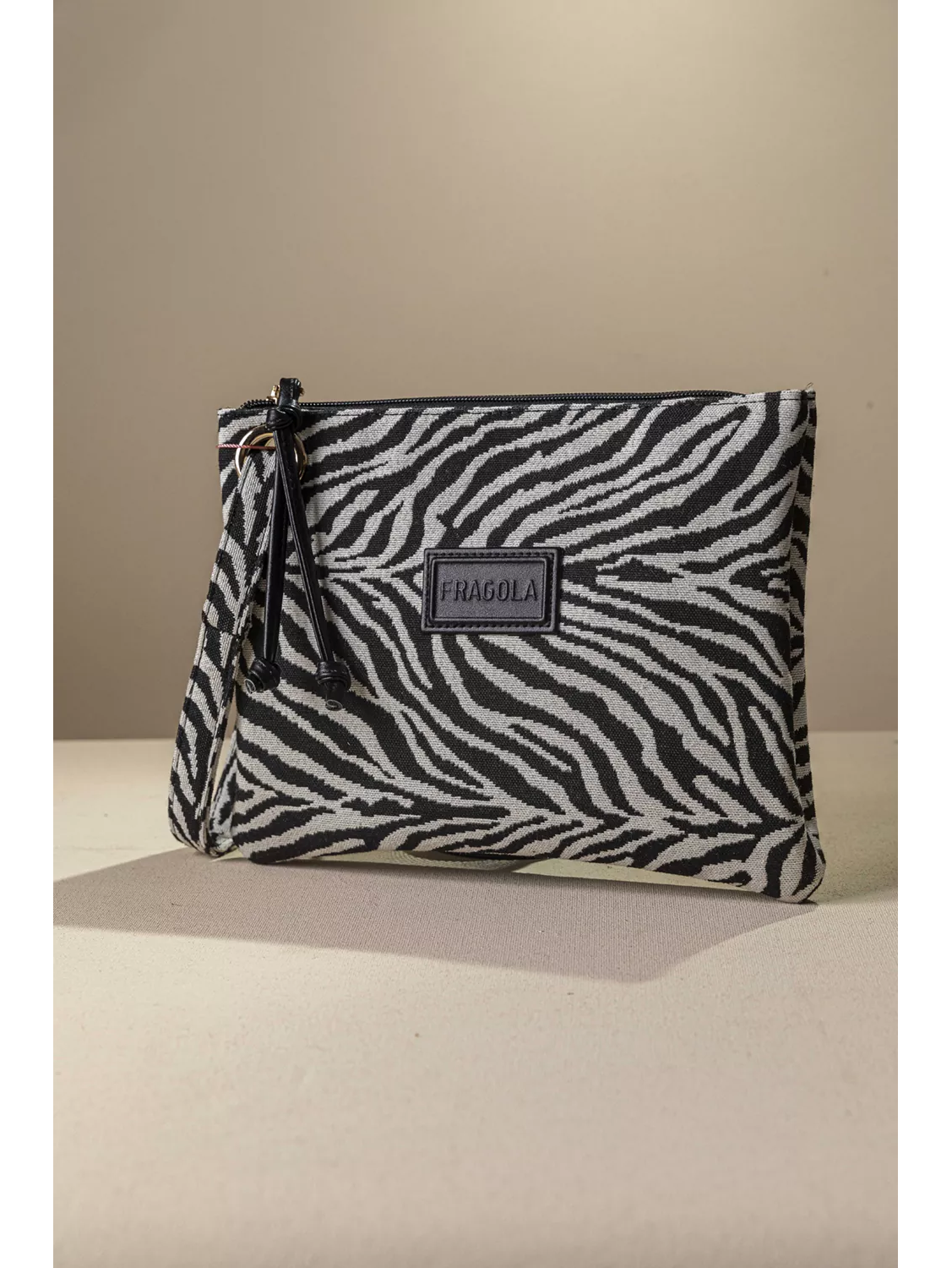 • Στιλάτο νεσεσέρ/τσαντάκι με εντυπωσιακά patterns, ιδανικό για εμφανίσεις που ξεχωρίζουν. • Κατασκευασμένο από ανθεκτικό υφασμάτινο υλικό, συνδυάζει πρακτικότητα και μόδα ενώ μπορεί να φορεθεί και ως τσαντάκι χειρός. • Στο πίσω μέρος διαθέτει extra θήκη με φερμουάρ, προσφέροντας επιπλέον αποθηκευτικό χώρο για μικρο-αντικείμενα που θέλεις να έχεις εύκολα προσβάσιμα. • Ο εσωτερικός του χώρος διαθέτει επιπλέον θήκη με φερμουάρ. Κλείνει με φερμουάρ και εντυπωσιακό puller απο υλικό για μεγαλύτερη ασφάλεια. • Το διακριτικό αλλά ταυτόχρονα δυναμικό λογότυπο FRAGOLA στο μπροστινό μέρος προσθέτει χαρακτήρα και premium αισθητική. Υλικό: Υφαντό πανί σε εντυπωσιακά animal prints, γεωμετρικά σχήματα, μοτίβα από την φύση, και tranditional print.