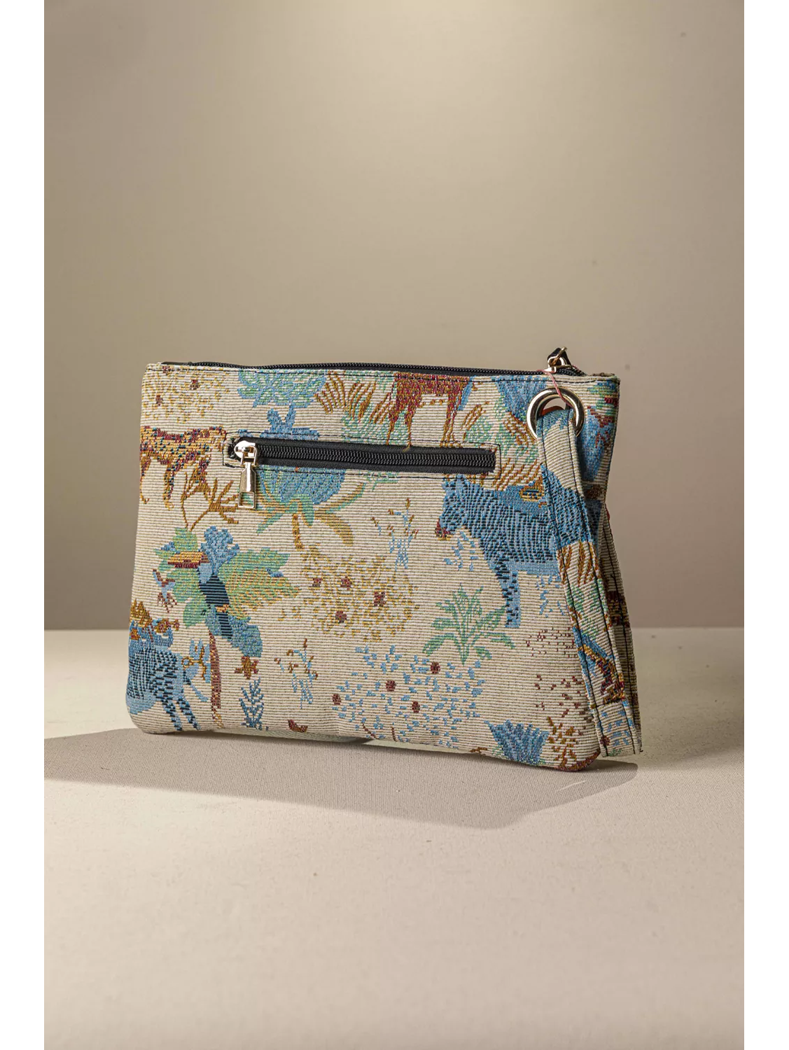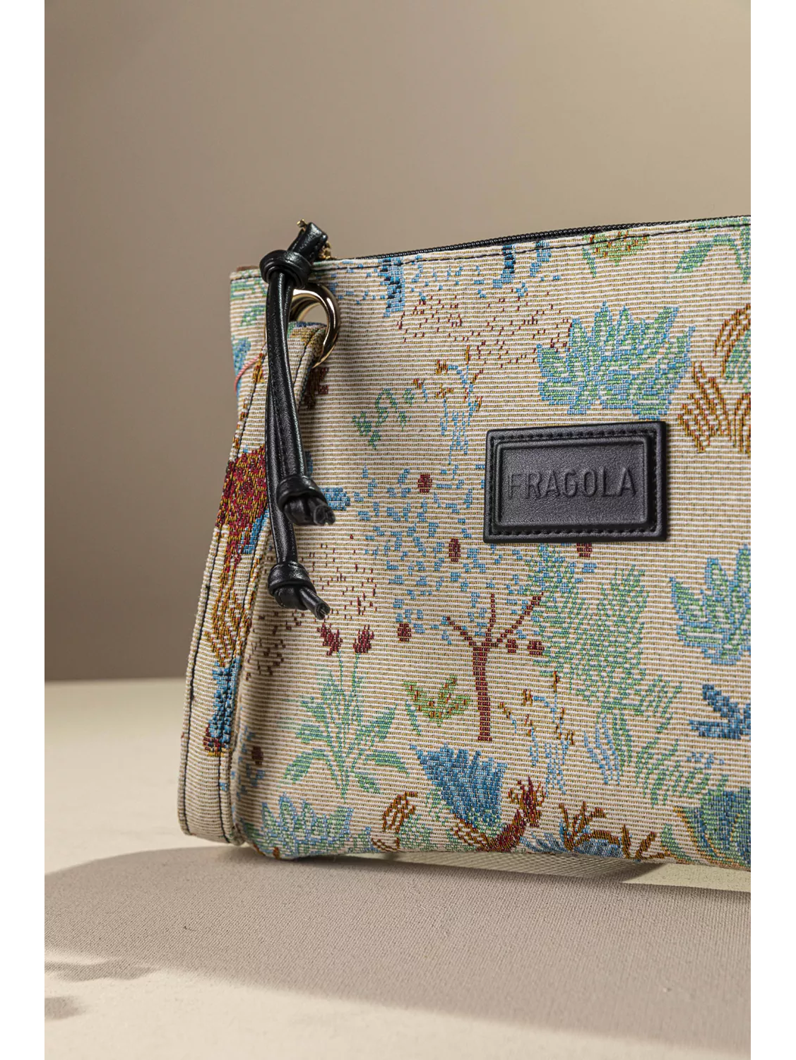 • Στιλάτο νεσεσέρ/τσαντάκι με εντυπωσιακά patterns, ιδανικό για εμφανίσεις που ξεχωρίζουν. • Κατασκευασμένο από ανθεκτικό υφασμάτινο υλικό, συνδυάζει πρακτικότητα και μόδα ενώ μπορεί να φορεθεί και ως τσαντάκι χειρός. • Στο πίσω μέρος διαθέτει extra θήκη με φερμουάρ, προσφέροντας επιπλέον αποθηκευτικό χώρο για μικρο-αντικείμενα που θέλεις να έχεις εύκολα προσβάσιμα. • Ο εσωτερικός του χώρος διαθέτει επιπλέον θήκη με φερμουάρ. Κλείνει με φερμουάρ και εντυπωσιακό puller απο υλικό για μεγαλύτερη ασφάλεια. • Το διακριτικό αλλά ταυτόχρονα δυναμικό λογότυπο FRAGOLA στο μπροστινό μέρος προσθέτει χαρακτήρα και premium αισθητική. Υλικό: Υφαντό πανί σε εντυπωσιακά animal prints, γεωμετρικά σχήματα, μοτίβα από την φύση, και tranditional print.