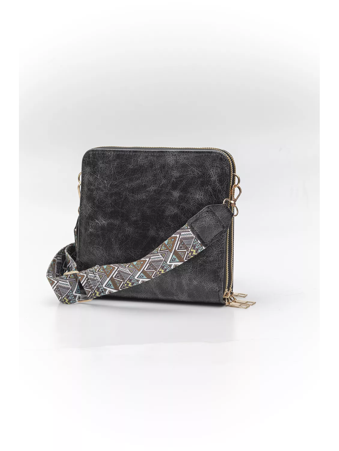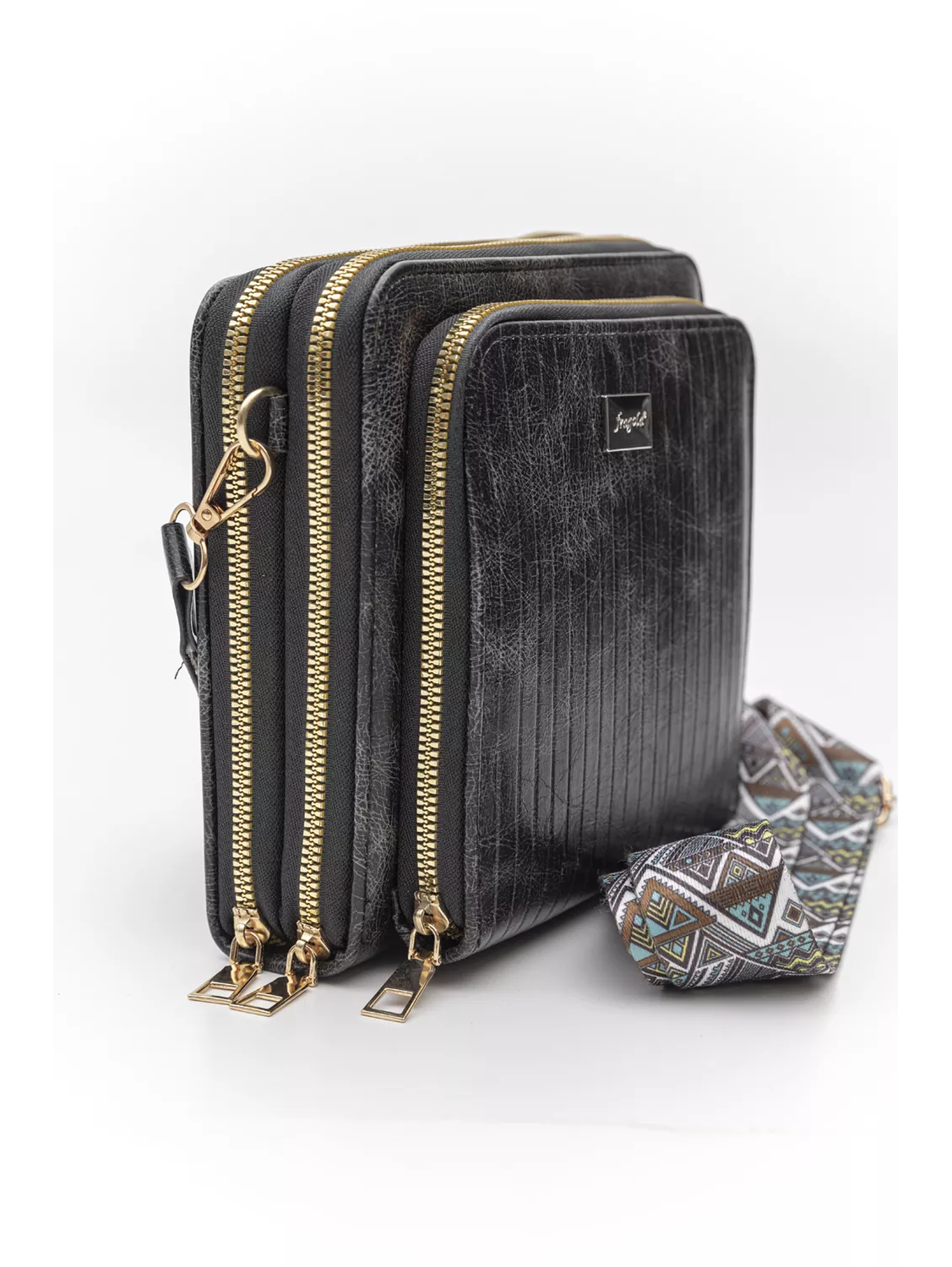 Χιαστί τριθέσιο τσαντάκι σταθερό για όλες τις ώρες τη ημέρας. Πολλές βοηθητικές θήκες στο εσωτερικό του. Με ιδιαίτερο αυξομειούμενο μαλακό ιμάντα.