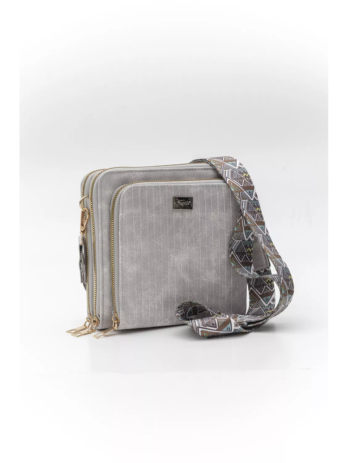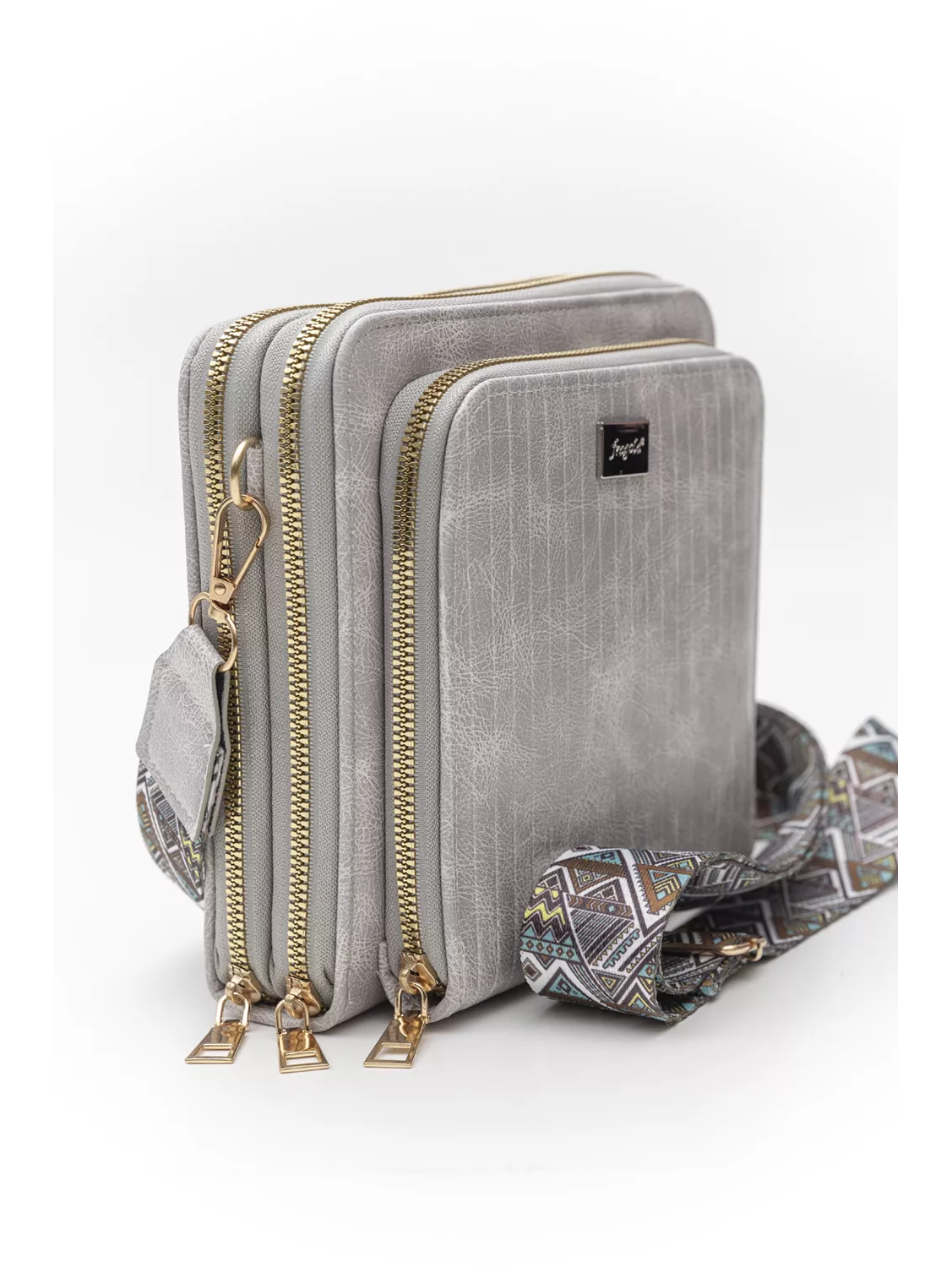 Χιαστί τριθέσιο τσαντάκι σταθερό για όλες τις ώρες τη ημέρας. Πολλές βοηθητικές θήκες στο εσωτερικό του. Με ιδιαίτερο αυξομειούμενο μαλακό ιμάντα.