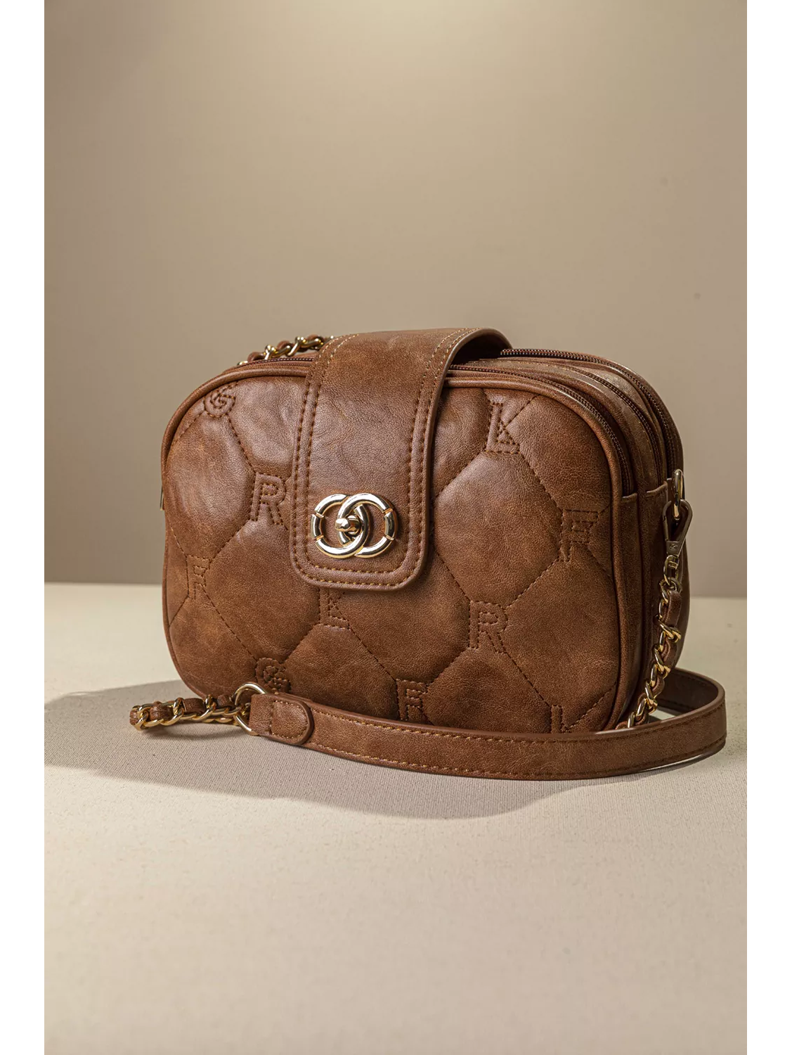• Στο εσωτερικό της θα βρεις όλα τις έξτρα μικρές θέσεις με φερμουάρ ή χωρίς για τα μικροαντικείμενά σου! • Η αλυσίδα ώμου με επένδυση υλικού προσθέτει άνεση και σταθερό κράτημα. • Με μια κίνηση μπορείτε να μετατρέψετε την τσάντα από χιαστί σε ώμου. Στο πίσω μέρος της τσάντας υπάρχει θέση για τη ζώνη σας , ώστε να μπορείτε να μετατρέψετε το τσαντάκι σε beltbag. • Το φινίρισμα του προσδίδει την αίσθηση πολυτελούς και στιβαρής κατασκευής. Υλικό: Μαλακό συνθετικό δέρμα με παλαιωμένη όψη. Καπιτονέ σχέδιο με γαζιά που απεικονίζει τα γράμματα της εταιρείας.