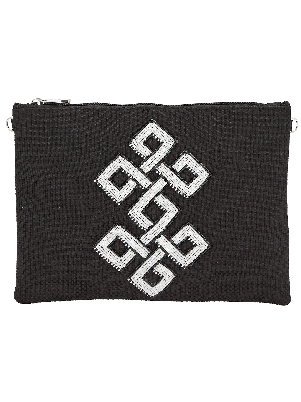 Τσάντα φάκελος με φερμουάρ και αλυσίδα χειροποίητος (26χ19 cm) κεντημένο στο χέρι με χάνδρες ,σε χρώμα μαύρο