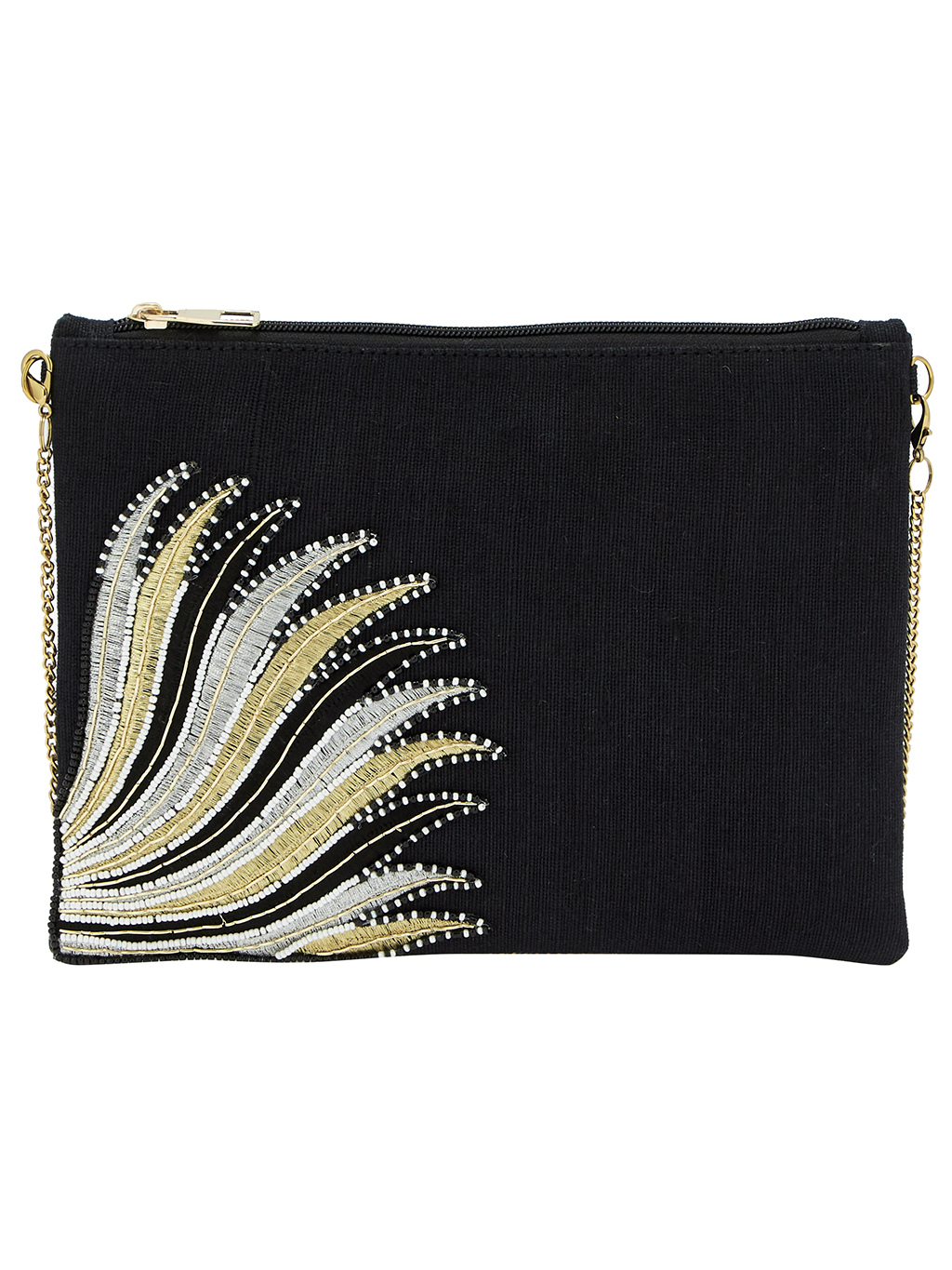 Τσάντα-φάκελος με φερμουάρ και αλυσίδα χειροποίητος κεντημένο στο χέρι με χάνδρες,σε χρώμα μαύρο 25x19cm