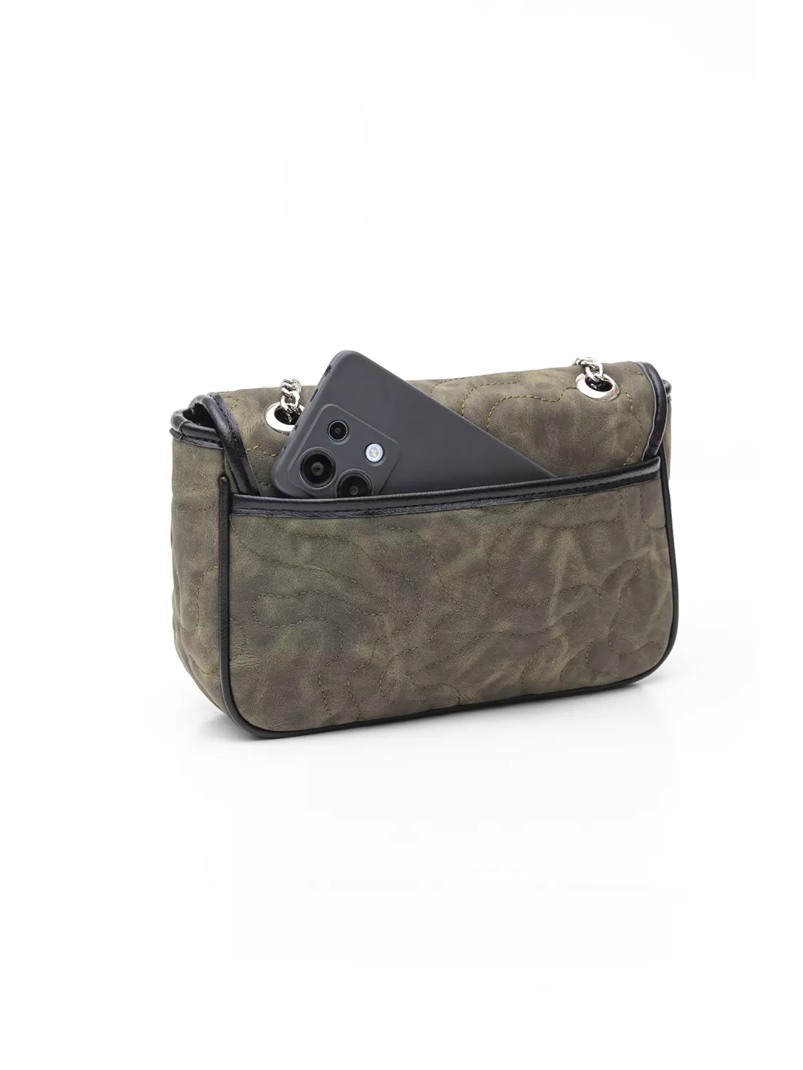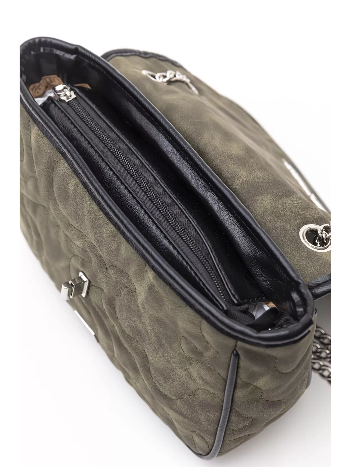 Τσάντα με καπάκι και μεταλλικό στριφτό κλείσιμο. Τροχισμένη αλυσίδα που φοριέται διπλή ή μονή και αυξομειώνεται ανάλογα από την περίσταση! Κάτω από το καπάκι η τσάντα κλείνει με φερμουάρ για απόλυτη ασφάλεια στα πράγματα σας. Στο εσωτερικό διαθέτει την κλασική τσέπη με φερμουάρ και έξτρα τσεπάκια για μικροαντικείμενα. Στο πίσω μέρος μεγάλη εύχρηστη τσέπη που κλείνει με button.