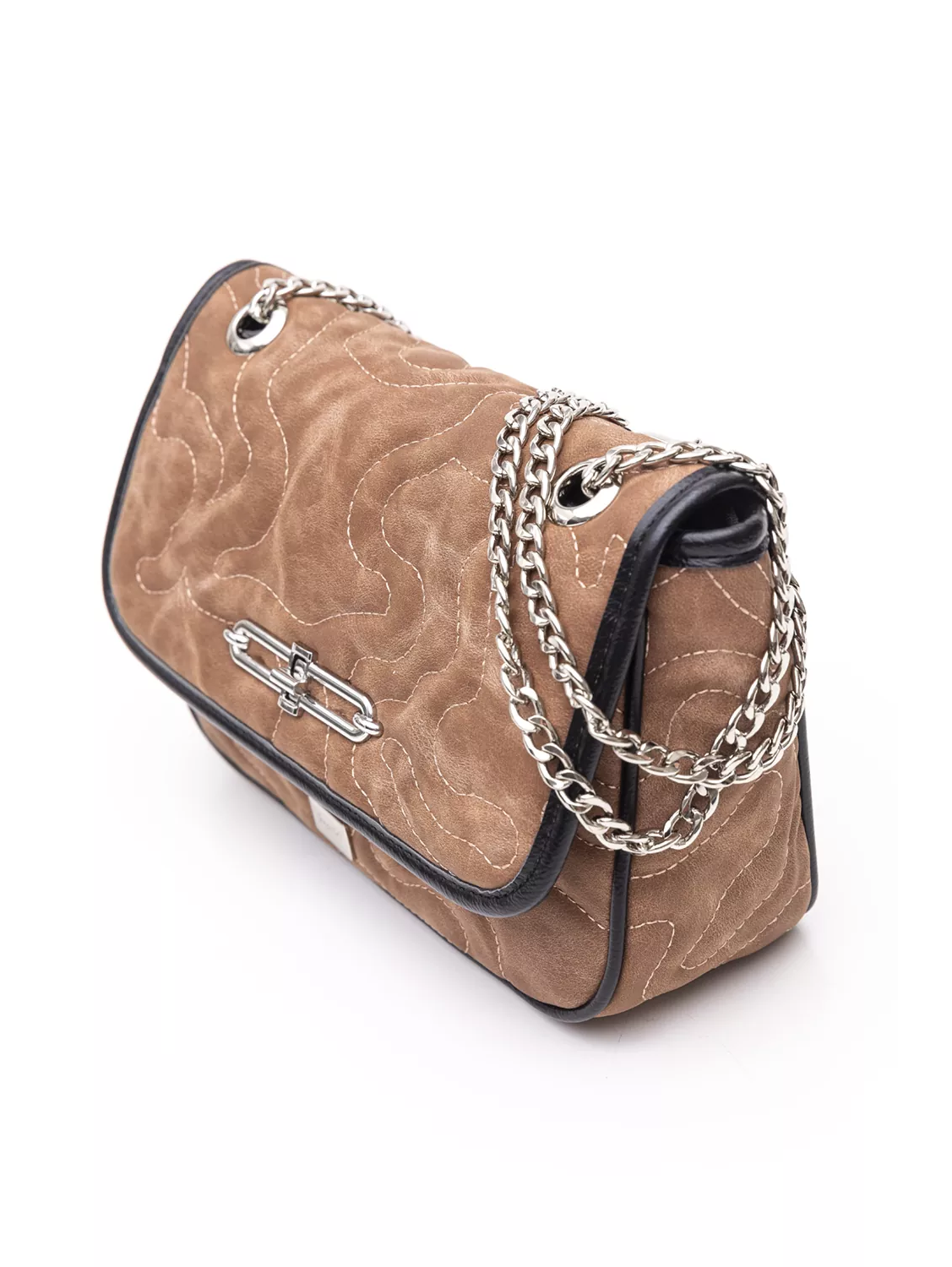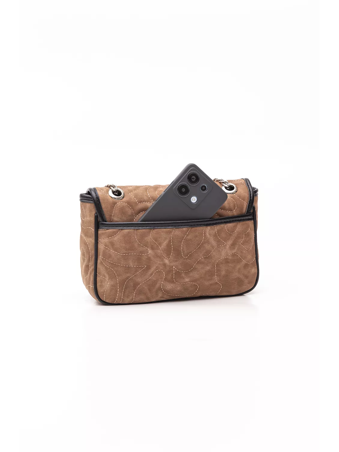 Τσάντα με καπάκι και μεταλλικό στριφτό κλείσιμο. Τροχισμένη αλυσίδα που φοριέται διπλή ή μονή και αυξομειώνεται ανάλογα από την περίσταση! Κάτω από το καπάκι η τσάντα κλείνει με φερμουάρ για απόλυτη ασφάλεια στα πράγματα σας. Στο εσωτερικό διαθέτει την κλασική τσέπη με φερμουάρ και έξτρα τσεπάκια για μικροαντικείμενα. Στο πίσω μέρος μεγάλη εύχρηστη τσέπη που κλείνει με button.