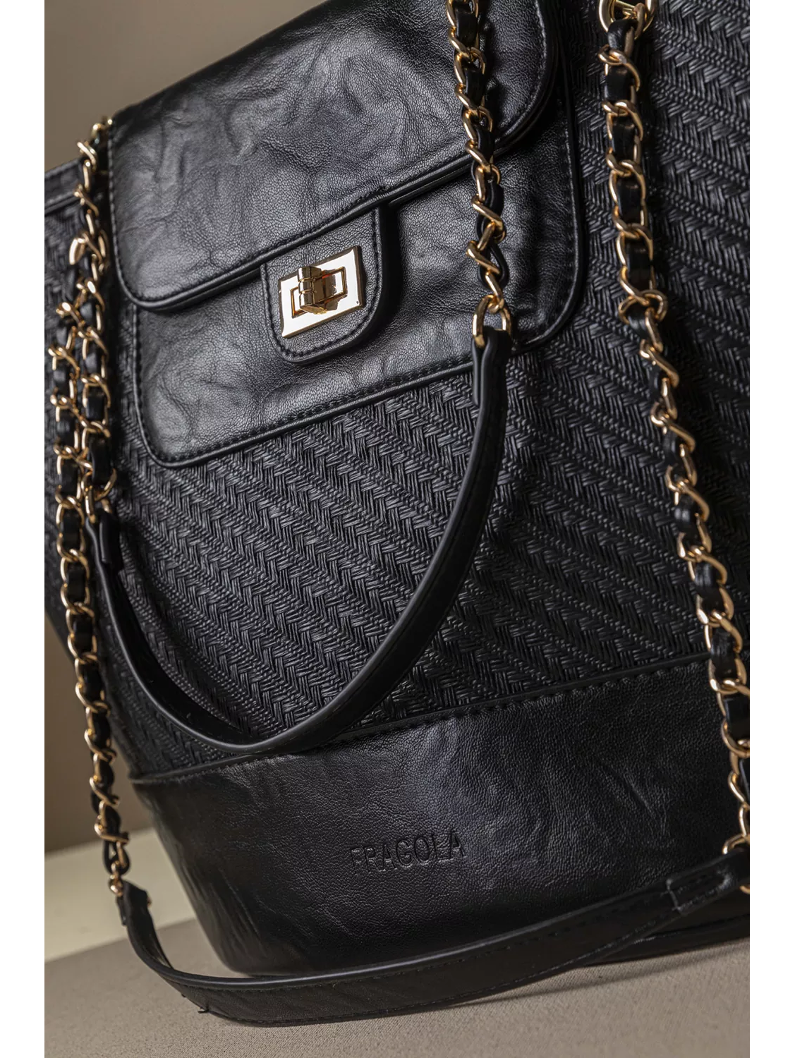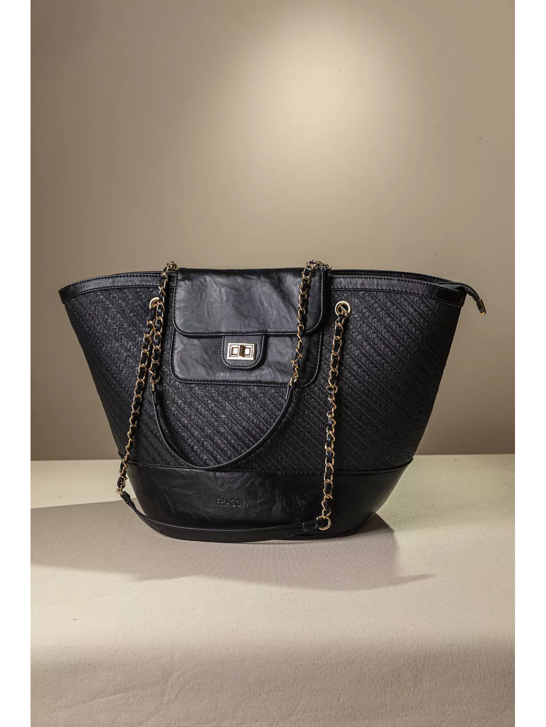 • Shopper τσάντα ώμου κατασκευασμένη από μαλακό συνθετικό δέρμα με υφή ψάθας.
