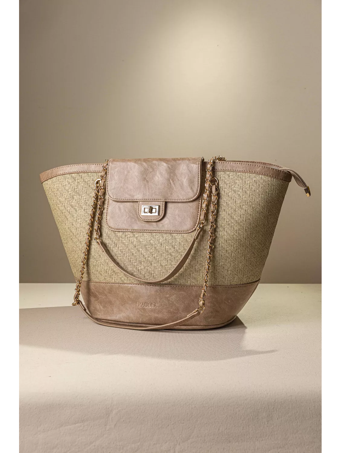 Υλικό: Συνθετικό δέρμα με υφή ψάθας σε γήινες αποχρώσεις.