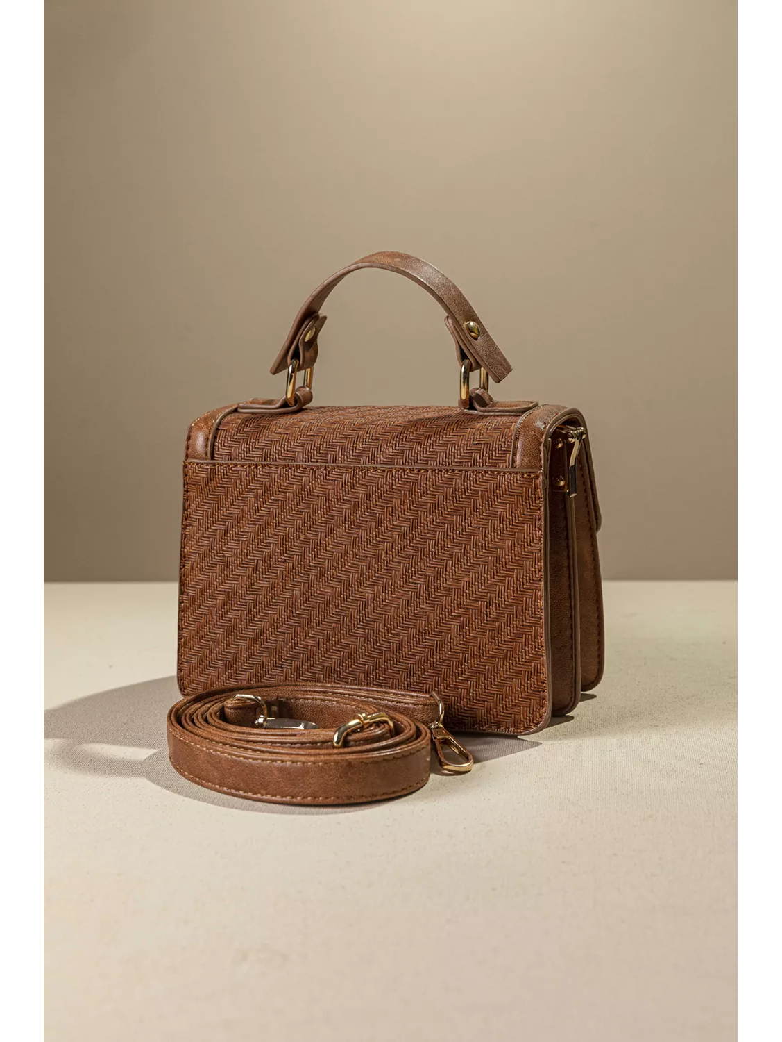 • Διθέσια κομψή και διαχρονική τσάντα χειρός, καπάκι με διακριτικό ανάγλυφο logo και χρυσές μεταλλικές λεπτομέρειες.