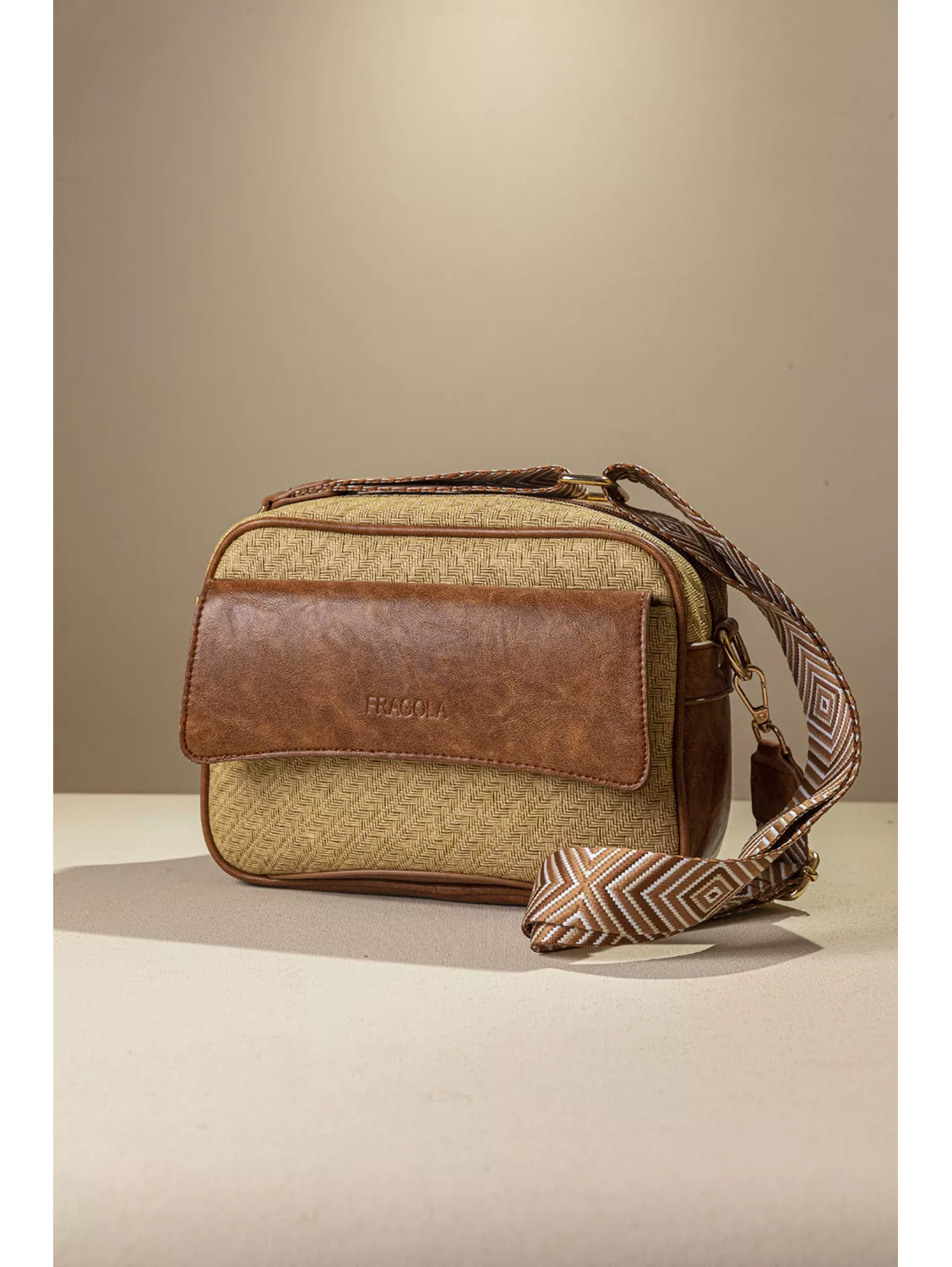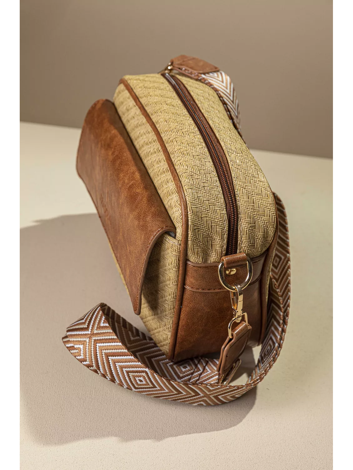 Υλικό: Συνθετικό δέρμα με υφή ψάθας σε γήινες αποχρώσεις