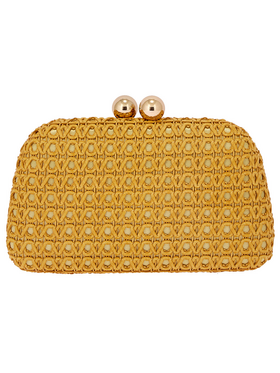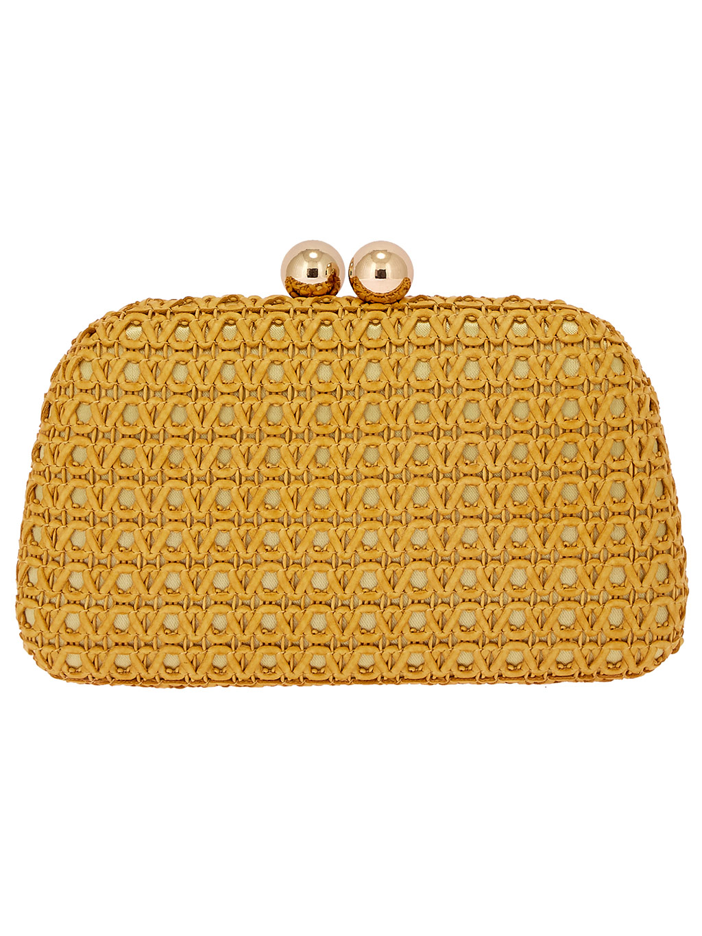 Τσαντάκι clutch από ψάθα και μεταλλικό κούμπωμα 20x12cm σε xρώμα κίτρινο