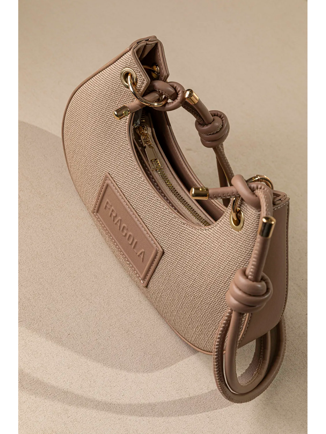 Τσαντάκι γόνδολα για τις βραδινές και όχι μόνο εμφανίσεις σας! Διαθέτει μια κεντρική ευρύχωρη θέση, με τα κλασικά τσεπάκια στη φόδρα για τα μικροαντικείμενα σας, που κλείνει με φερμουάρ. Το "χεράκι" του ώμου στις άκρες του κάνει δέσιμο, τύπου ναυτικού κόμπου!!