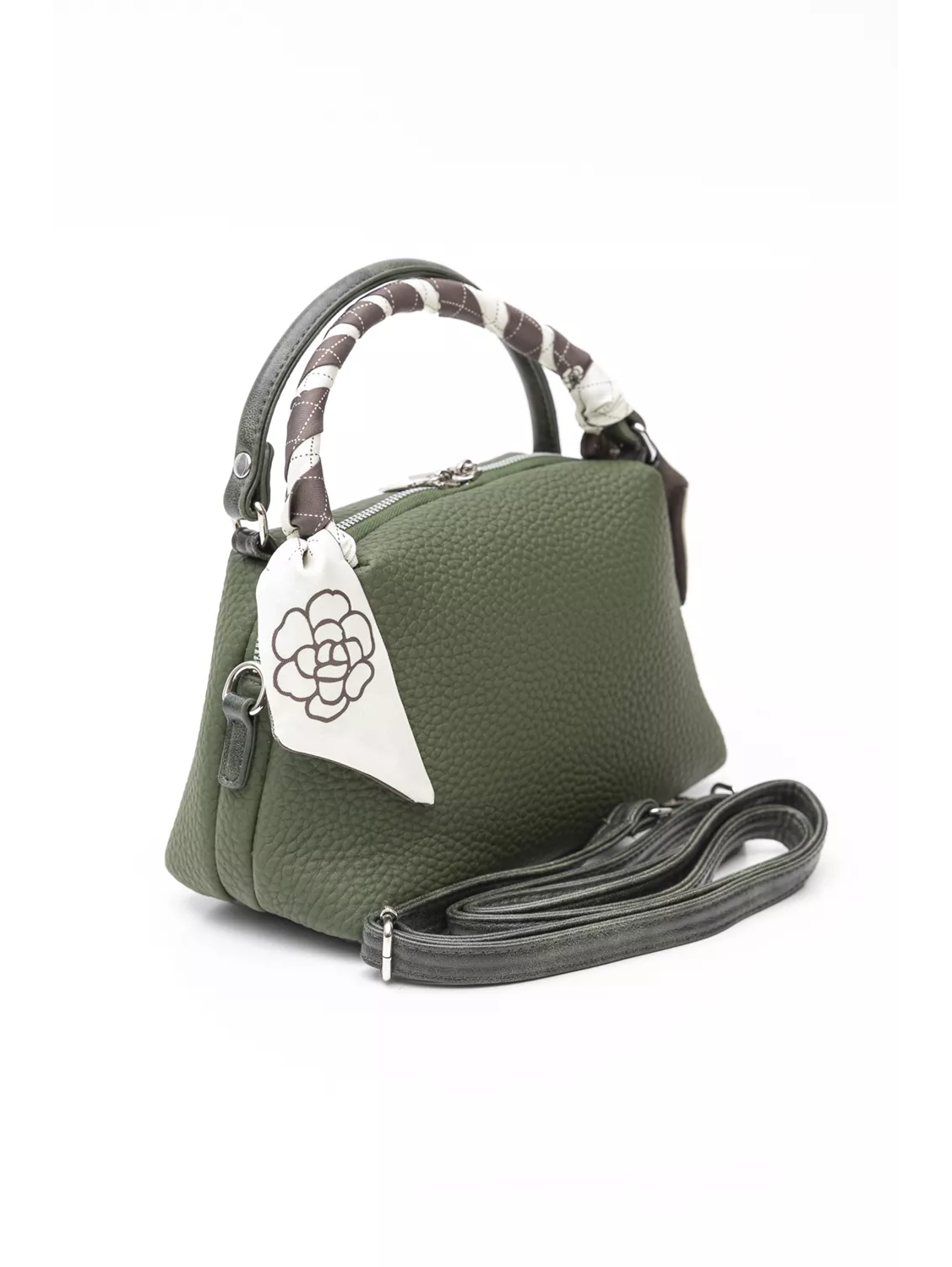 Soft τσάντα μεσαίου μεγέθους με σταθερό πάτο και 2 χεράκια για κράτημα. Διαθέτει έξτρα αυξομειούμενο χέρι για να την φοράτε χιαστί όλη μέρα! Το μαντήλι μπορείτε να το διακοσμήσετε όπως εσείς επιιθυμείτε στην τσάντα! Στο εσωτερικό της θα βρείτε το κλασικό πίσω τσεπάκι με φερμουάρ και όλα τα κλασικα τσεπάκια για τα μικροαντικείμενα σας. Υλικό: Ανάγλυφο οικολογικό δέρμα