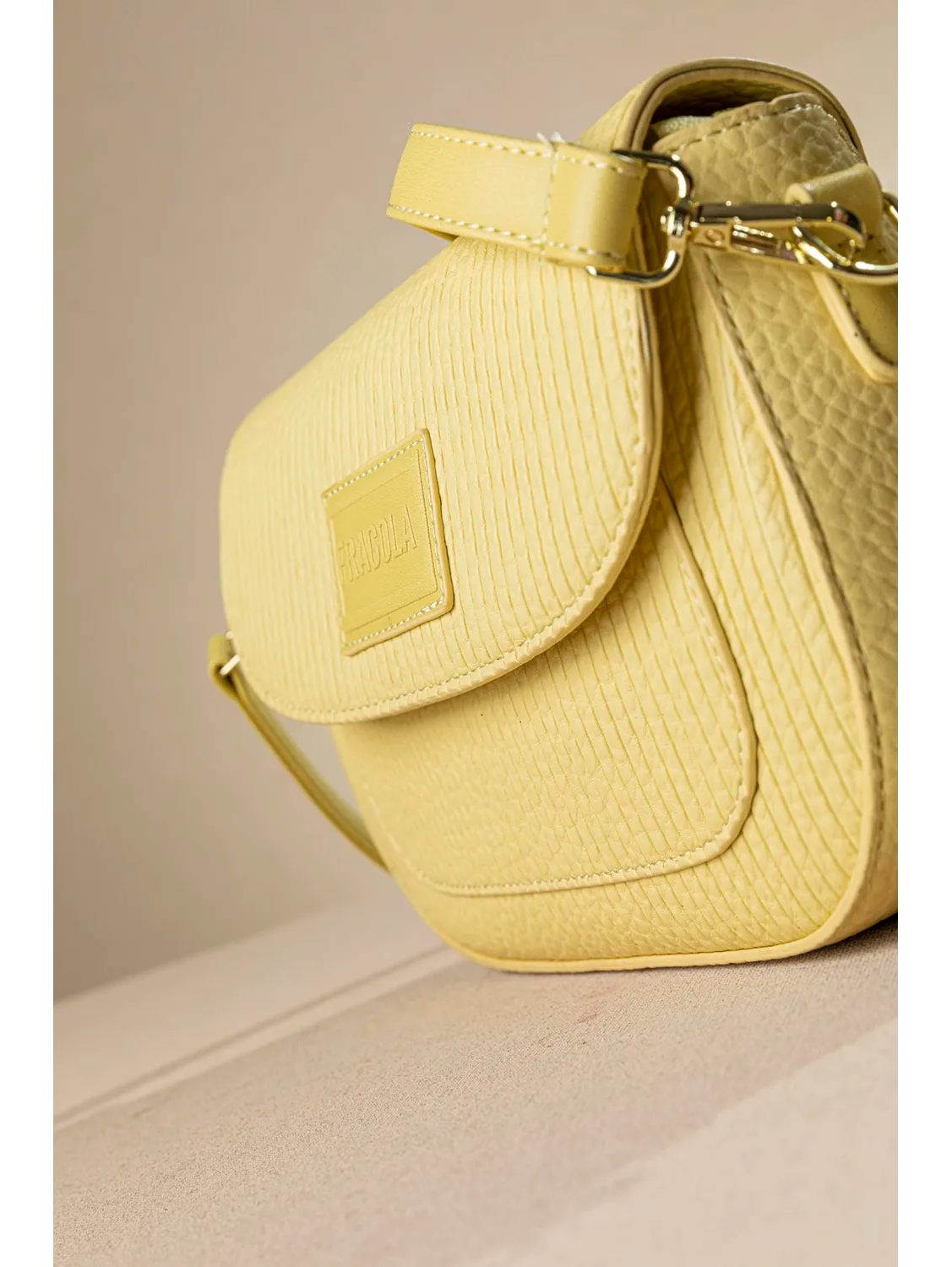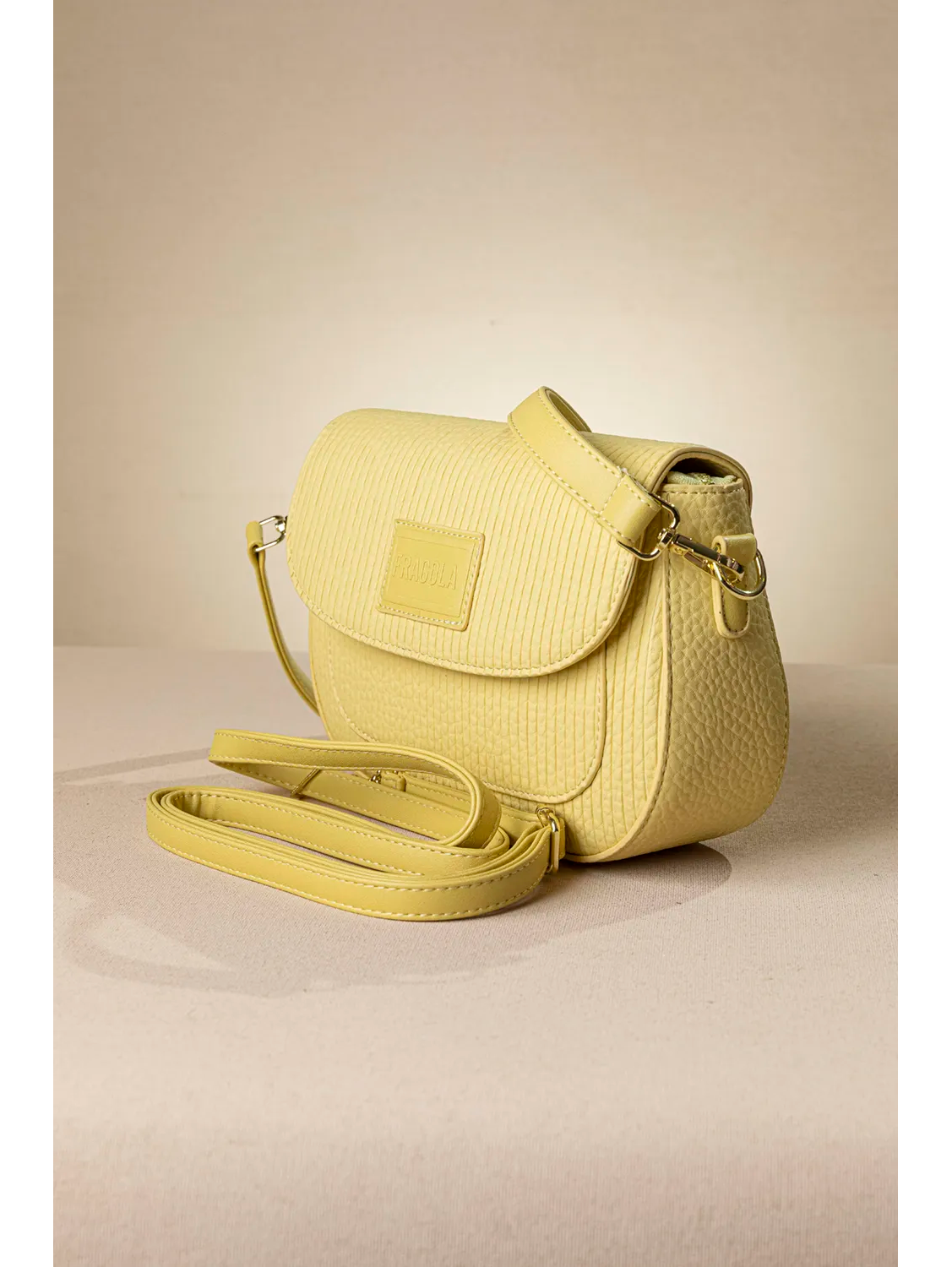 Τσαντάκι ώμου με καπάκι που κλείνει με μαγνητικο μπουτόν και φερμουάρ κάτω από αυτό. Στο εξωτερικό μπροστά μέρος κάτω από το καπάκι διαθέτει έξτρα θέση. Ενιαίος εσωτερικός χώρος με μια έξτρα τσέπη με φερμουάρ για αποθήκευση μικροαντικειμένων. Η τσάντα διαθέτει έξτρα μακρύ "χεράκι" που μετατρέπεται σε χιαστί.