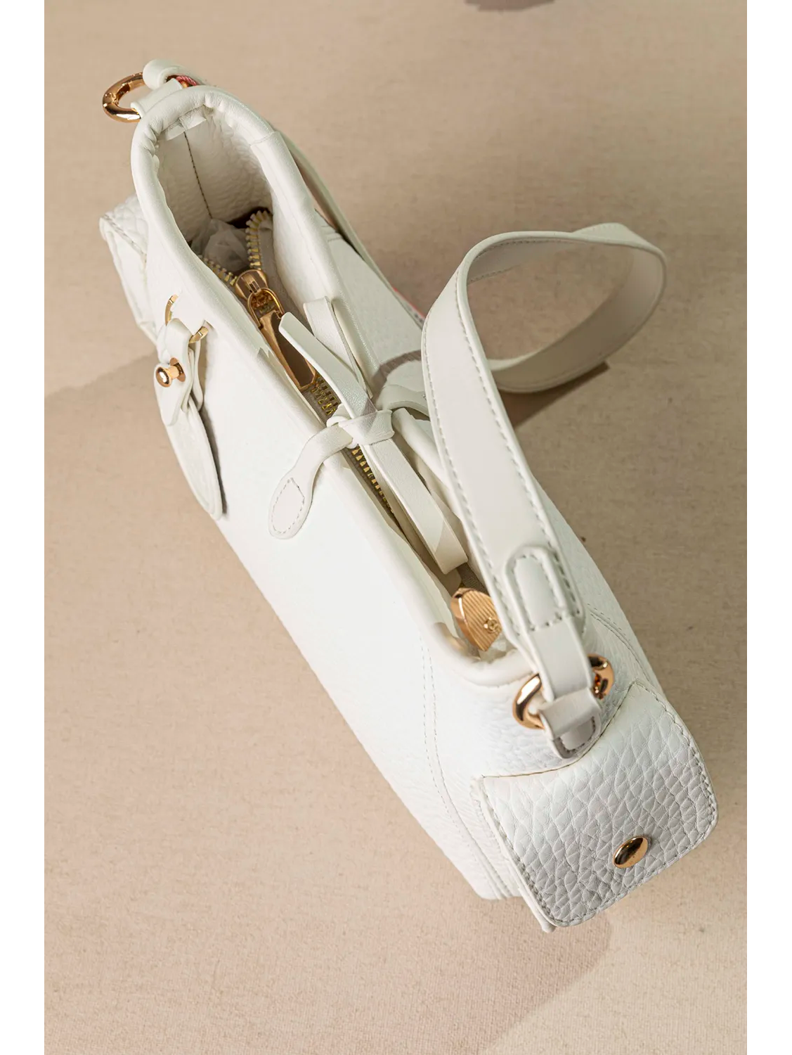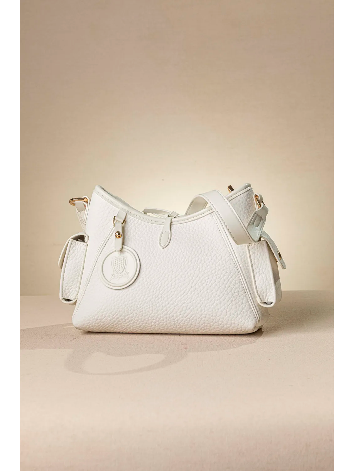 Μικρό τσαντάκι για τη βόλτα σας! Με δύο εξωτερικές τσεπούλες δεξιά και αριστερά της τσάντας για αποθήκευση και μικροαντικειμένων και έξτρα στιλ! Στο εσωτερικό της θα βρείτε μια τσέπη με φερμουάρ. Διαθέτει έξτρα μακρύ "χεράκι" για να την μετατρέψετε σε χιαστί! Υλικό: Συνθετικό δέρμα με μαλακή υφή
