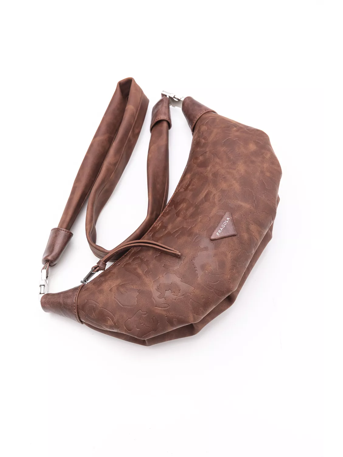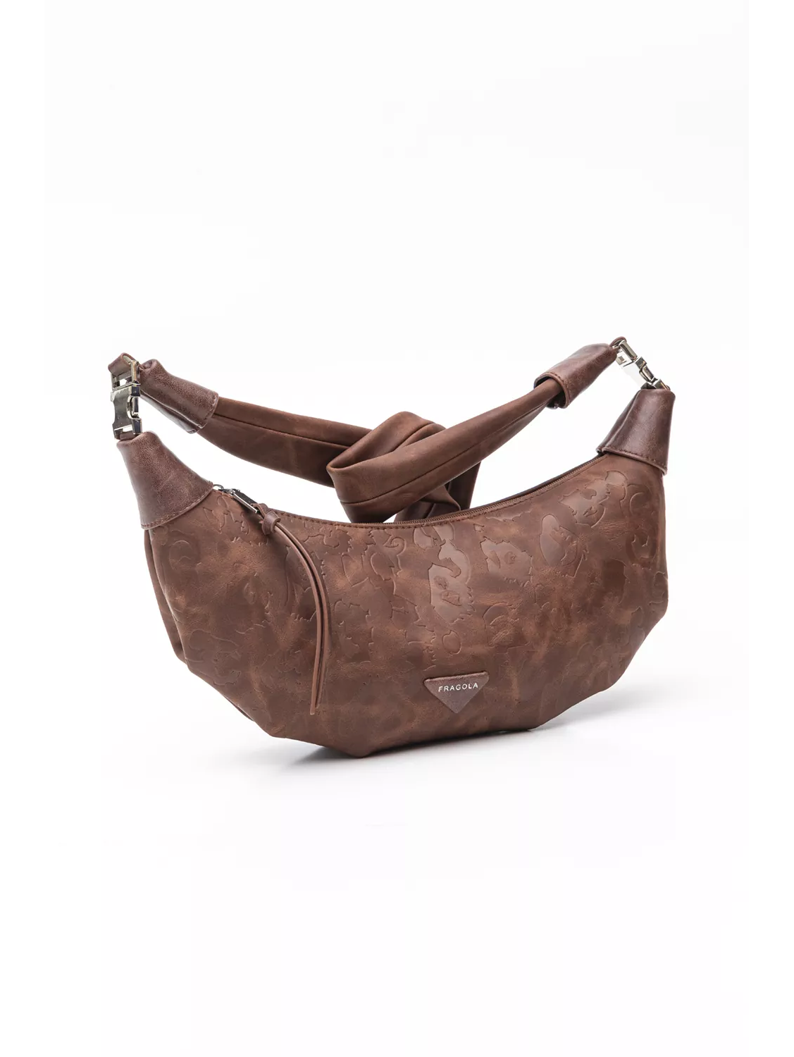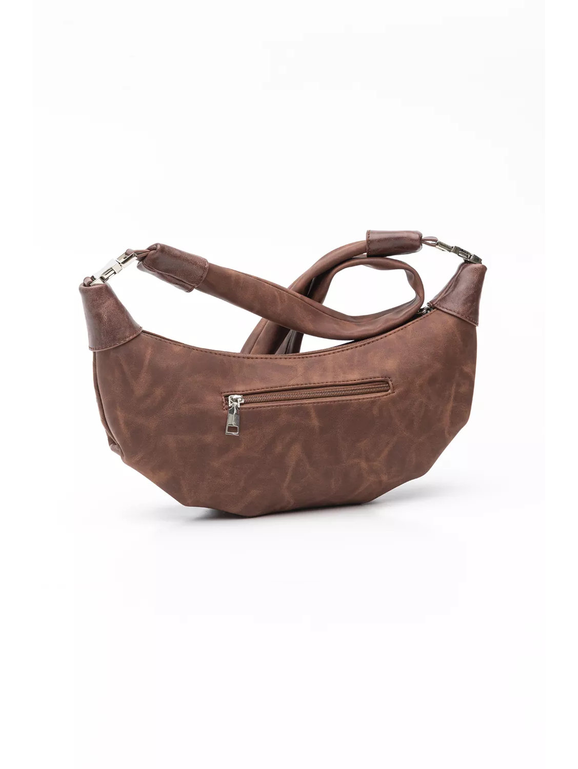 Χιαστί τσάντα-croissant για όλες τις ηλικίες. Η κεντρική θέση κλείνει με φερμουάρ. Σουπερ soft, φαρδύ χέρι. Υλικό: Συνθετικό δέρμα σταμπωμένο με πυρογραφία με ανάγλυφο αποτέλεσμα.
