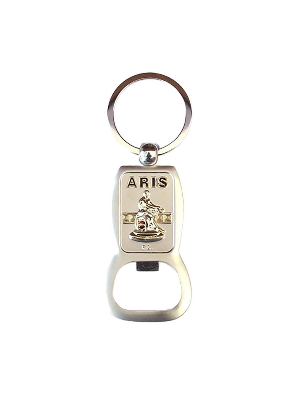Πρακτικό ανοιχτήρι μπουκαλιών μπρελόκ ARIS FC μεταλλικό ασημί ματ, με το σήμα του Θεού Άρη.