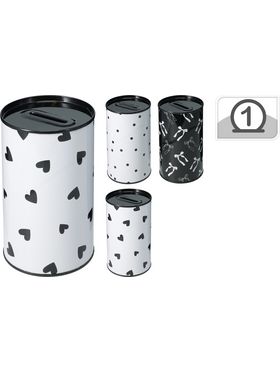 Κουμπαράς μεταλλικός κύλινδρος ασπρόμαυρος με σχέδια