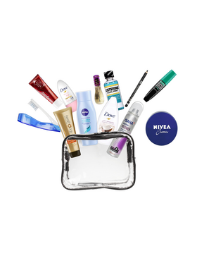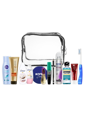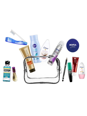 Ένα custom bundle kit με 12 προϊόντα ατομικής υγιεινής και περιποίησης σε mini size κατάλληλα για ταξίδι. Αυτό το πλήρες σετ προϊόντων περιποίησης, διαθέσιμο σε ένα όμορφο νεσεσέρ, καλύπτει τις καθημερινές ανάγκες της σύγχρονης γυναίκας που ενδιαφέρεται πραγματικά για την εμφάνισή της, την προσωπική της υγιεινή και την ευκολία στα ταξίδια αλλά δεν θέλει να ξοδέψει χρήματα και χρόνο για να προετοιμάσει όλα τα απαραίτητα. όταν σκοπεύει να ταξιδέψει. Η απόκτηση αυτής της προσεκτικά επιλεγμένης συλλογής ταξιδιωτικών προϊόντων μπορεί να σας εξοικονομήσει πολύτιμο προσωπικό χρόνο και πολλά χρήματα όταν ετοιμάζετε τις αποσκευές σας. Αυτό είναι το απόλυτο must-have ταξιδιωτικό σετ για κάθε γυναίκα που θέλει να είναι έτοιμη όταν έρχεται ένα ταξίδι και να είναι εξοπλισμένη με όλα τα απαραίτητα προϊόντα από τις αγαπημένες της μάρκες. Αυτό το κιτ ταξιδιού 13 τεμαχίων περιέχει τα ακόλουθα είδη περιποίησης και αξεσουάρ μεγέθους ταξιδιού