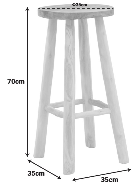 Σκαμπό Μπαρ Nusiwo Pakoworld Teak Ξύλο σε Φυσική Απόχρωση Φ35x70εκ