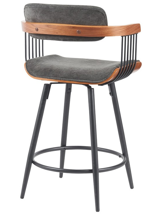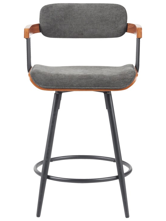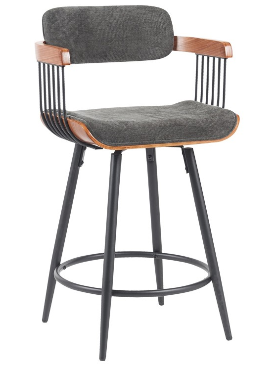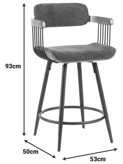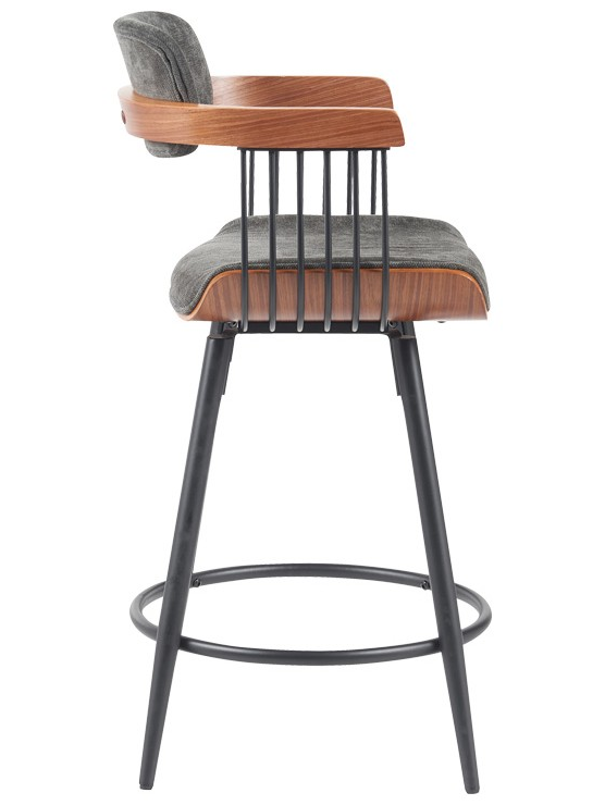Σκαμπό Μπαρ Cameo Pakoworld Μέταλλο Μαύρο-Καρυδί Ξύλο-Ανθρακί Ύφασμα 53x50x93εκ