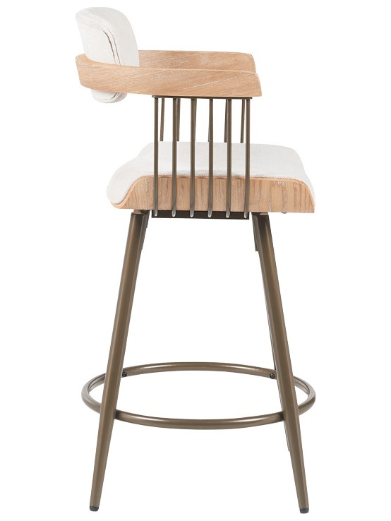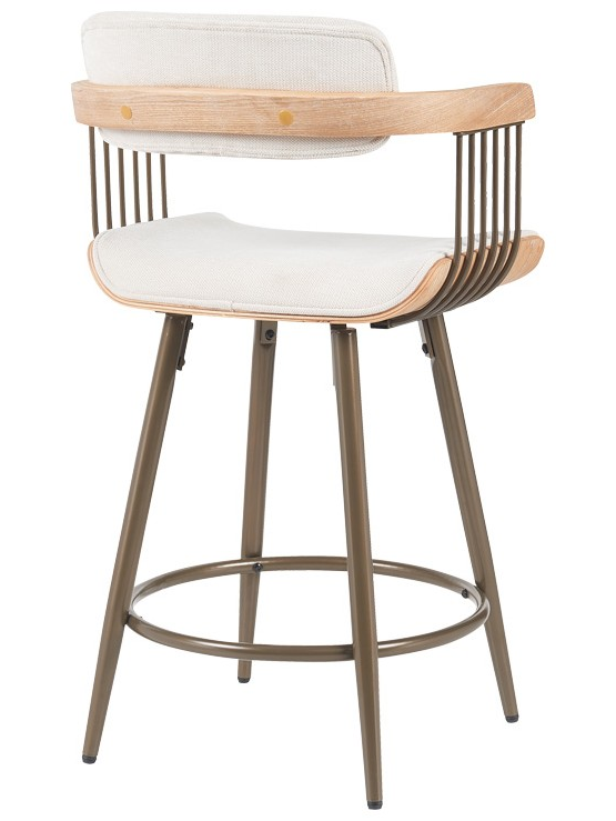 Το σκαμπό μπαρ Cameo συνδυάζει αρμονικά τη σύγχρονη αισθητική με την άνεση. Διαθέτει ένα καμπυλωτό κάθισμα και πλάτη, επενδυμένα με ένα απαλό ύφασμα που προσφέρει εξαιρετική άνεση . Οι λεπτομέρειες από φυσικό ξύλο στα μπράτσα προσθέτουν μια ζεστή, οργανική αίσθηση, ενώ τα μεταλλικά πόδια ολοκληρώνουν την εκλεπτυσμένη εμφάνιση, προσδίδοντας σταθερότητα αλλά και μια αίσθηση ελαφρότητας.