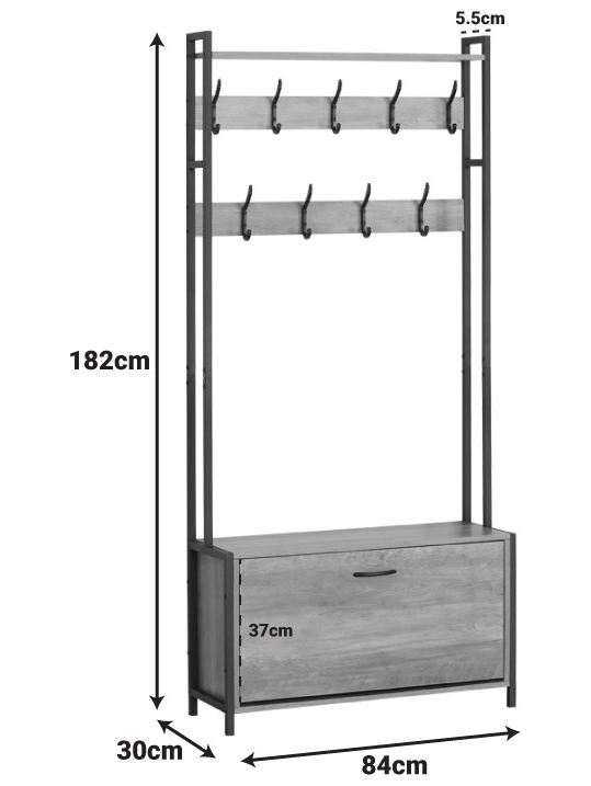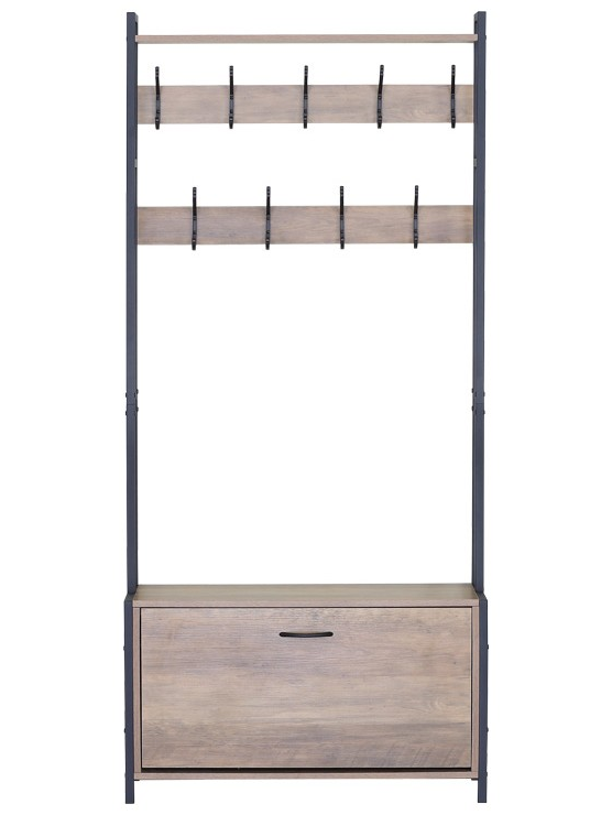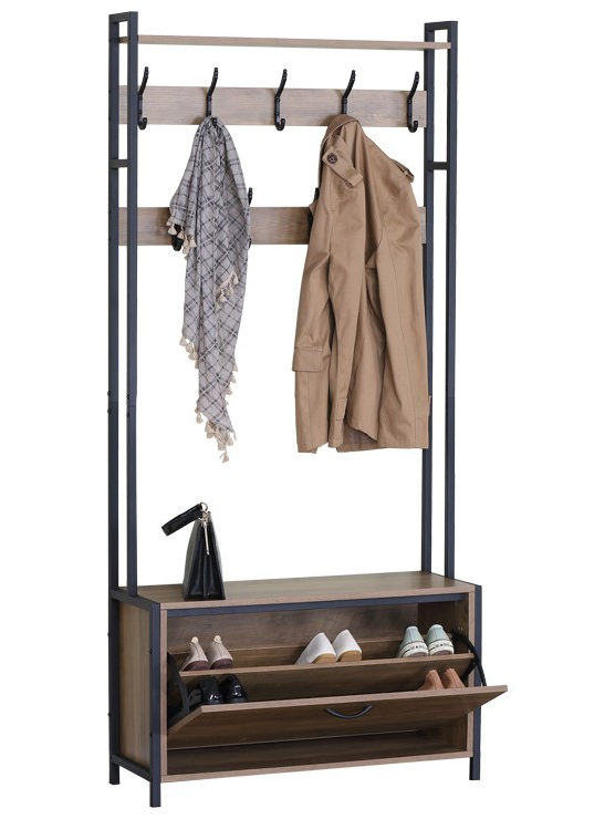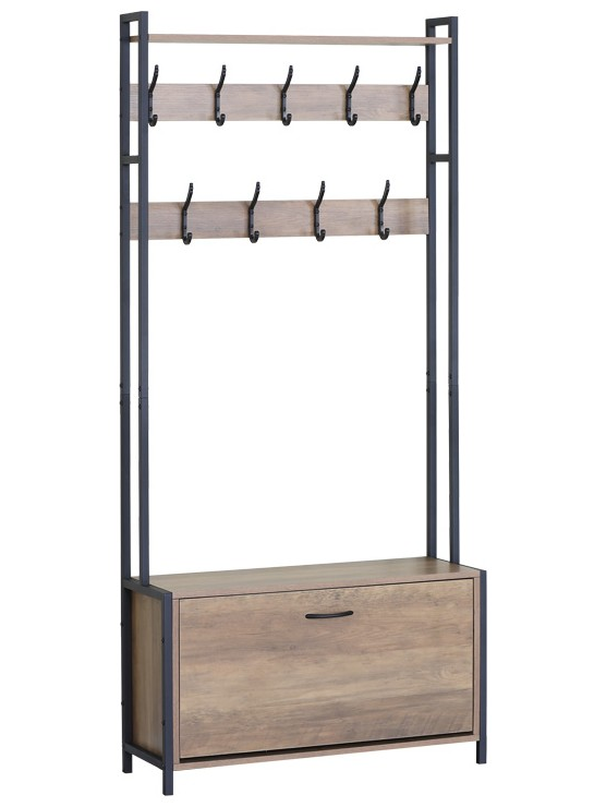 Το πολυλειτουργικό έπιπλο Ventoria είναι η ιδανική λύση για να διατηρήσετε την είσοδο, τον διάδρομο ή ακόμα και το υπνοδωμάτιό σας τακτοποιημένο και κομψό. Συνδυάζοντας κρεμάστρα ρούχων, παπουτσοθήκη και ένα πρακτικό παγκάκι, προσφέρει μέγιστη λειτουργικότητα σε έναν μοντέρνο βιομηχανικό σχεδιασμό.